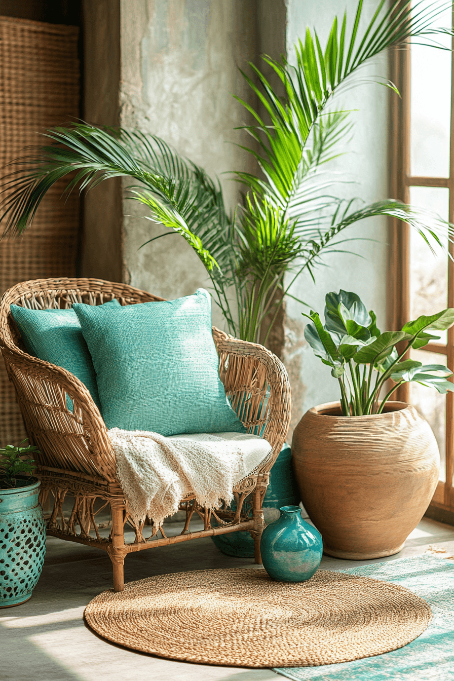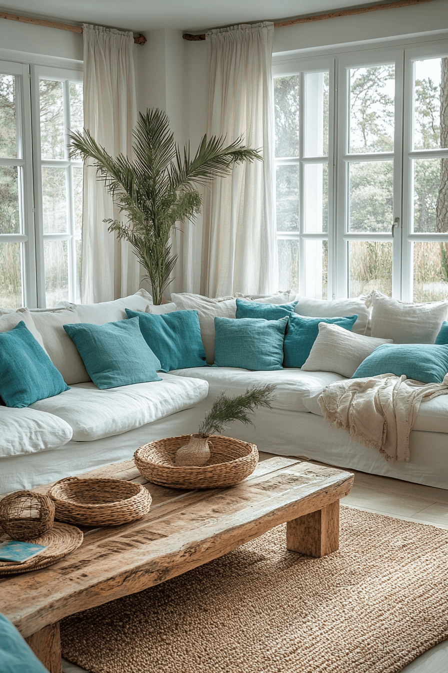 Ocean-inspired tones create a refreshing atmosphere filled with soft blues, whites, and sandy neutrals. This boho chic aesthetic uses airy fabrics and woven textures for a coastal feel. Pops of turquoise add vibrancy without overwhelming. Natural elements like driftwood enhance the theme. The space feels calm and breezy. Discover more ocean-inspired boho chic aesthetic ideas for a fresh vibe.