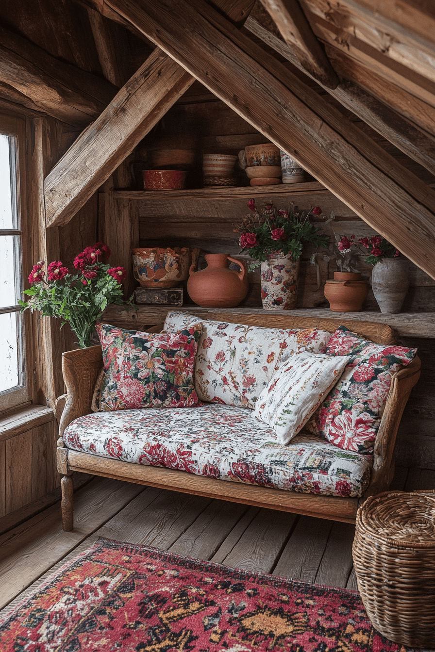 Rustic elements paired with soft florals create a charming and balanced environment. This boho chic aesthetic blends wooden textures with colorful textiles for warmth. Handmade décor adds personality and depth. Floral accents soften the look with a romantic touch. The result feels timeless and welcoming. Explore more rustic boho chic aesthetic ideas that feel cozy and natural.