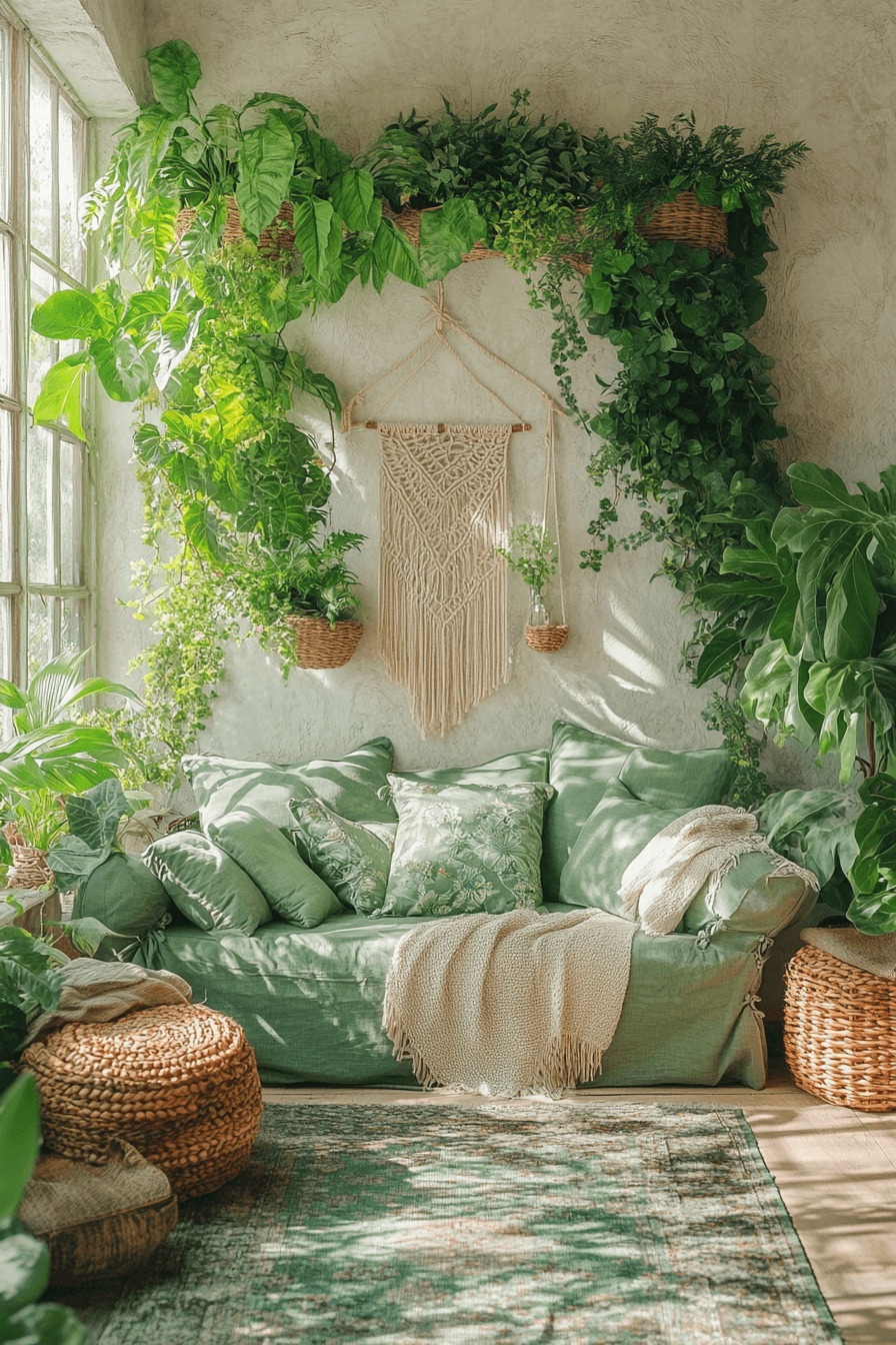 Greenery and vibrant textures fill the space with life and warmth, creating a lush and inviting environment. This boho chic aesthetic uses plants, woven décor, and colorful textiles for energy. The layered design feels cozy and organic. Natural elements enhance the relaxed vibe. The space feels fresh and welcoming. Discover more lush boho chic aesthetic ideas for a lively home.