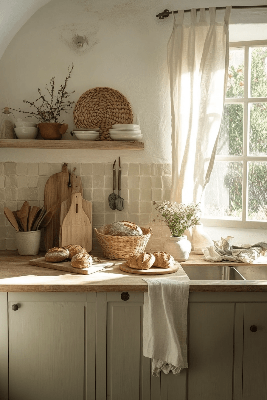 Breezy elements and open shelving create a space filled with movement and light. This cottagecore kitchen blends soft fabrics with natural textures for balance. Neutral tones keep everything uncluttered. Sunlight enhances the warmth and charm. The space feels refreshing and inviting. Tap to discover more breezy cottagecore kitchen inspiration.