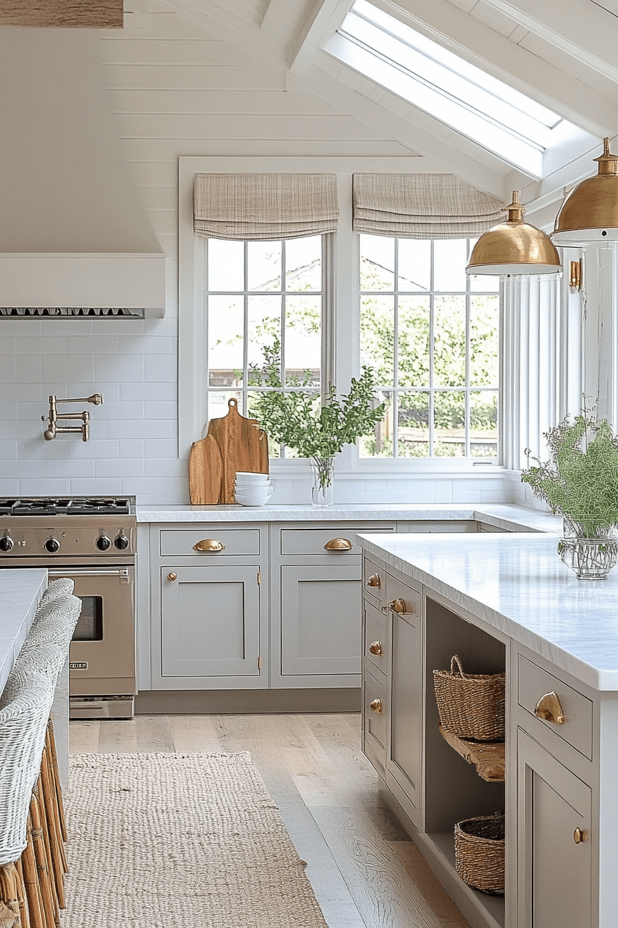 Soft whites and pale grays create a light, cloudlike environment that feels peaceful and open. This cottagecore kitchen blends airy tones with layered textures for depth. Wooden accents add warmth to balance the palette. The space feels calm and inviting. Every detail supports comfort and ease. Tap to explore more soft neutral cottagecore kitchen inspiration.