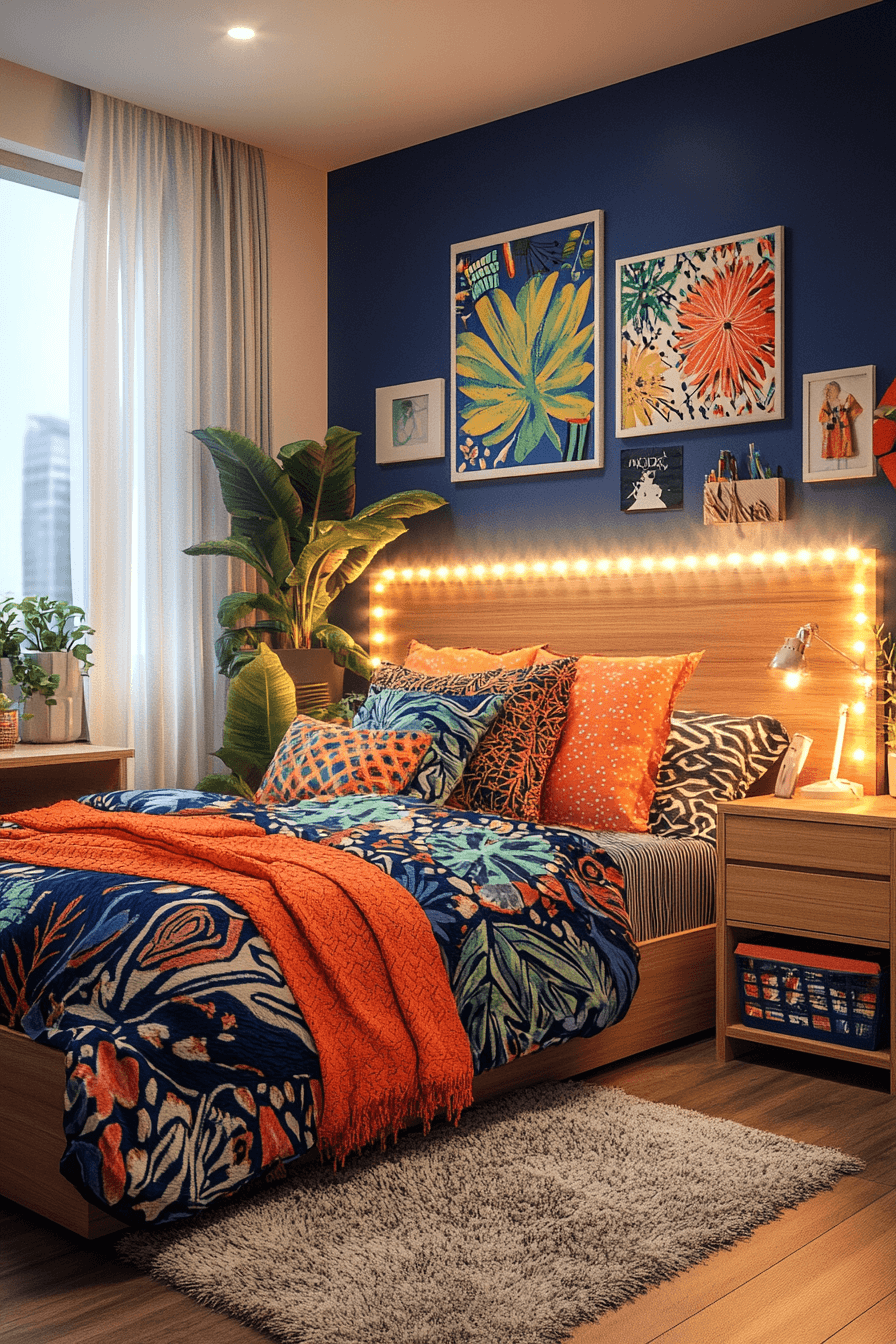 If you love making a statement, these dorm room ideas use bold color combinations to transform your space. Bright bedding, playful rugs, and colorful décor pieces create a lively and inspiring environment. Matching storage and desk accessories tie everything together seamlessly. Fun lighting like neon signs or string lights enhances the energetic vibe. This setup is perfect for creating a space that sparks creativity every day. Click to dive into more bold dorm transformations.