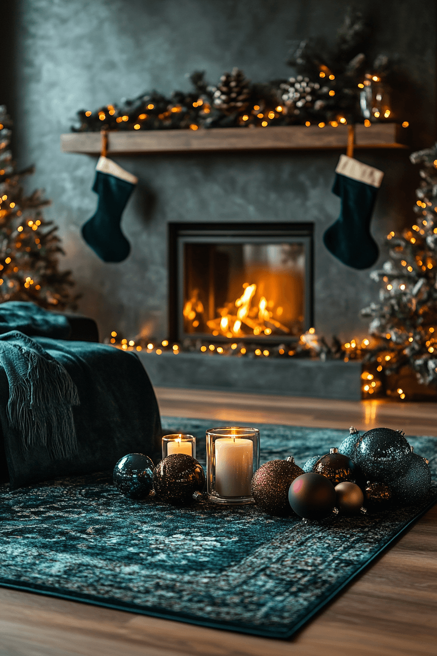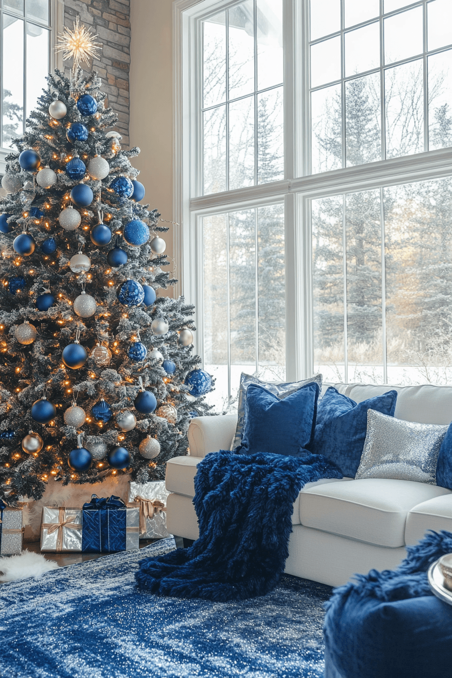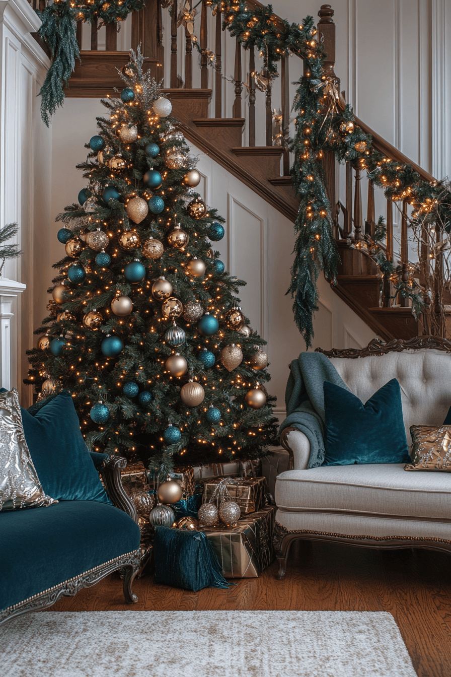 Sapphire tones give jewel tone Christmas decor a frosty yet regal touch. The cool blue shade pairs beautifully with crystal and silver accents. Sapphire ornaments shimmer like icy jewels on a winter night. The palette feels elegant and serene. It adds magical winter charm to the holiday season. Click to explore sapphire-inspired jewel tone Christmas decor looks.