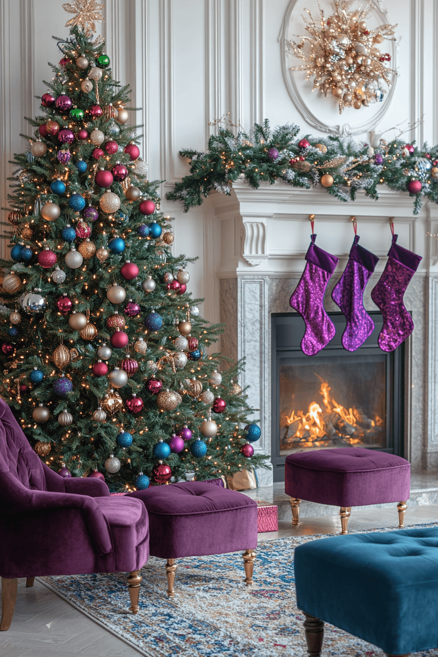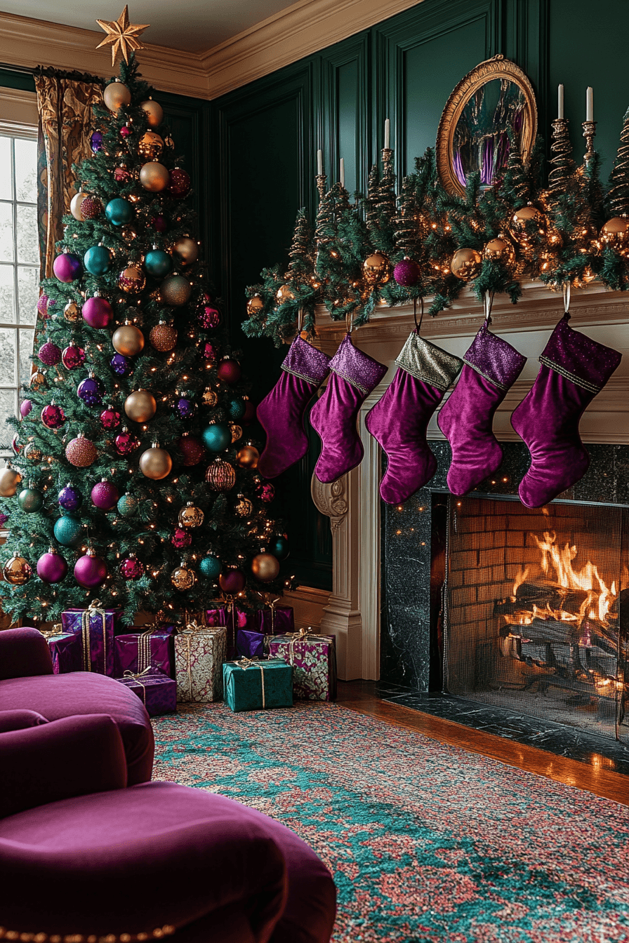 Amethyst completes jewel tone Christmas decor with bold elegance and creative charm. The deep purple shade stands out among greenery and lights. Amethyst ornaments add striking beauty to holiday displays. The color blends modern style with regal tradition. Your holiday décor becomes both unique and luxurious. Click to explore amethyst-inspired jewel tone Christmas decor ideas.
