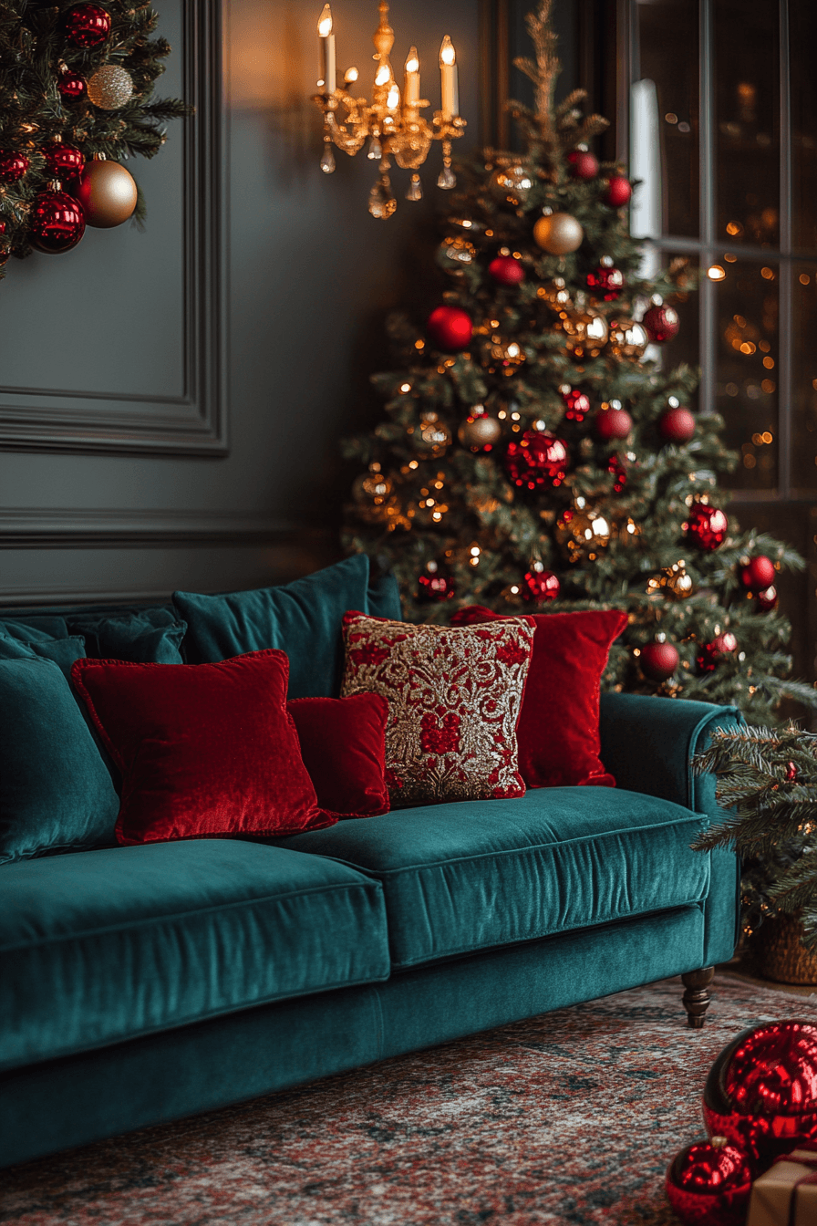 Luxurious gemstone shades elevate jewel tone Christmas decor with glamorous style. Emerald, ruby, and sapphire create a palette full of depth. Each ornament feels like a sparkling treasure. The bold colors add sophistication while still feeling festive. This theme transforms your space into a holiday showcase. Click to explore luxurious jewel tone Christmas decor inspiration.
