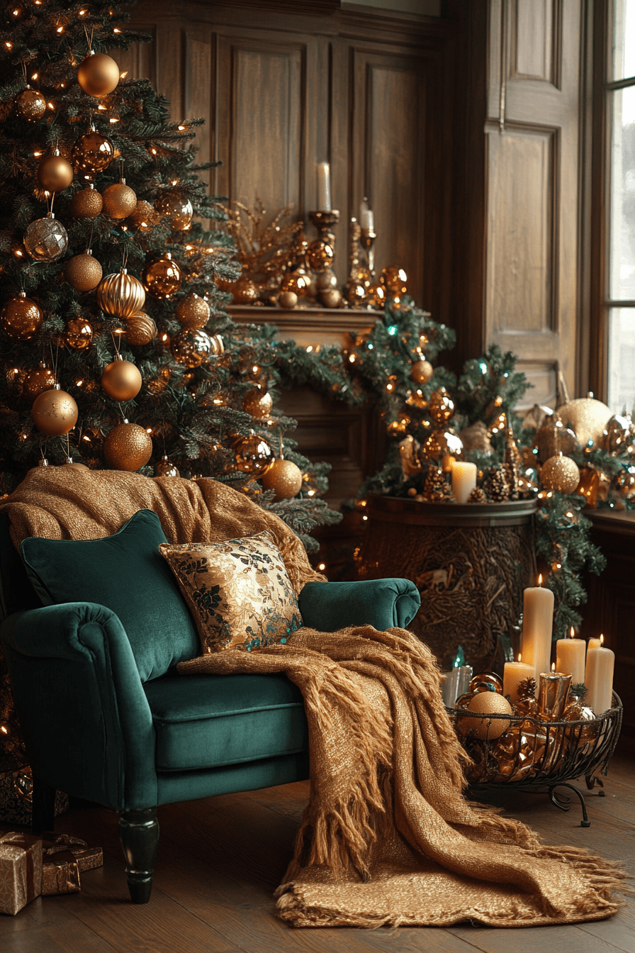Topaz shades introduce golden warmth into jewel tone Christmas decor, giving your space a glowing holiday ambiance. The amber hue shines beautifully alongside emerald and ruby accents. Topaz ornaments and candles reflect light like tiny sunbursts. This warm gemstone tone keeps winter decor feeling cozy yet refined. The result is both radiant and inviting. Tap to explore more topaz-inspired jewel tone Christmas decor inspiration.