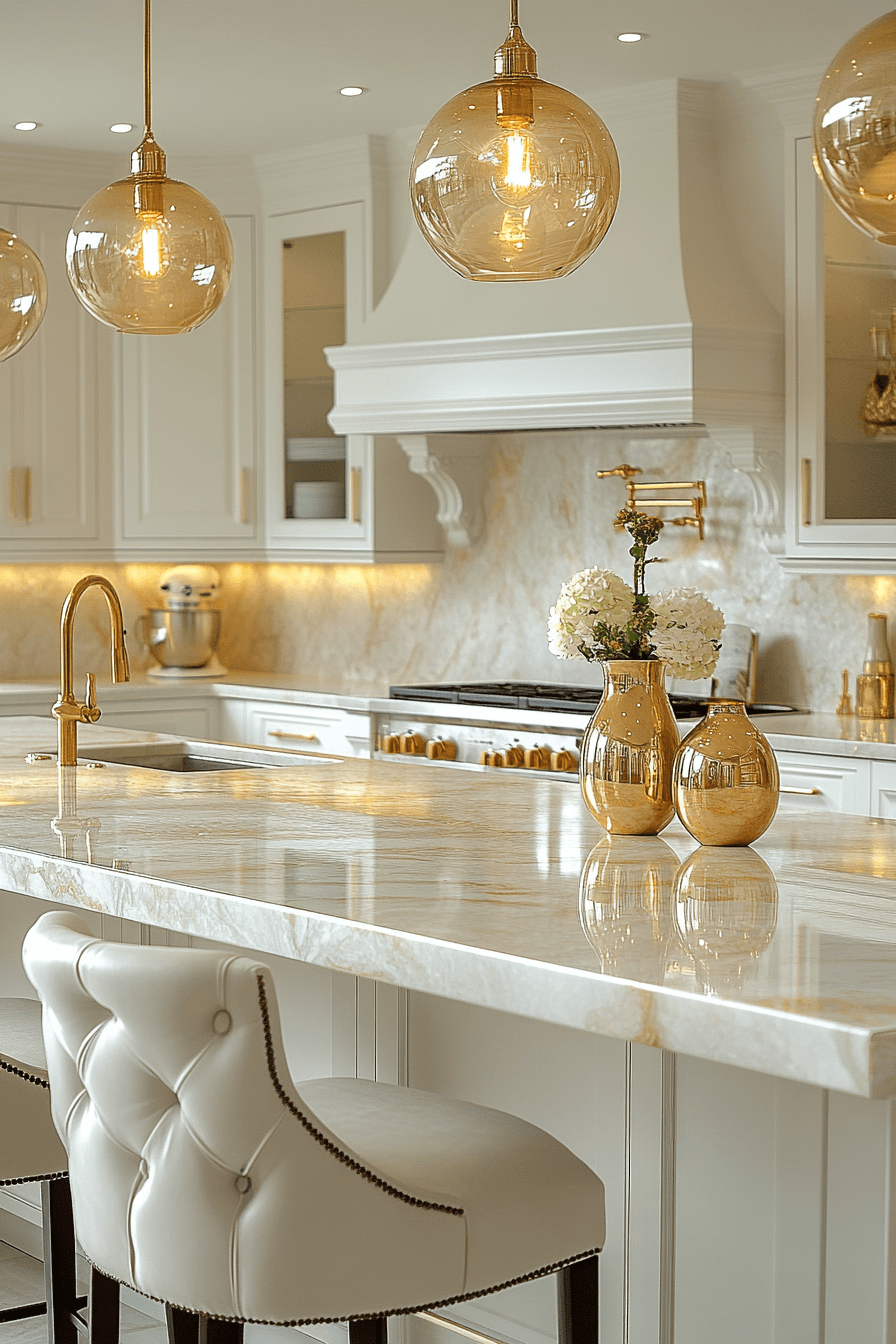 5. Champagne Glow Luxe Kitchen
