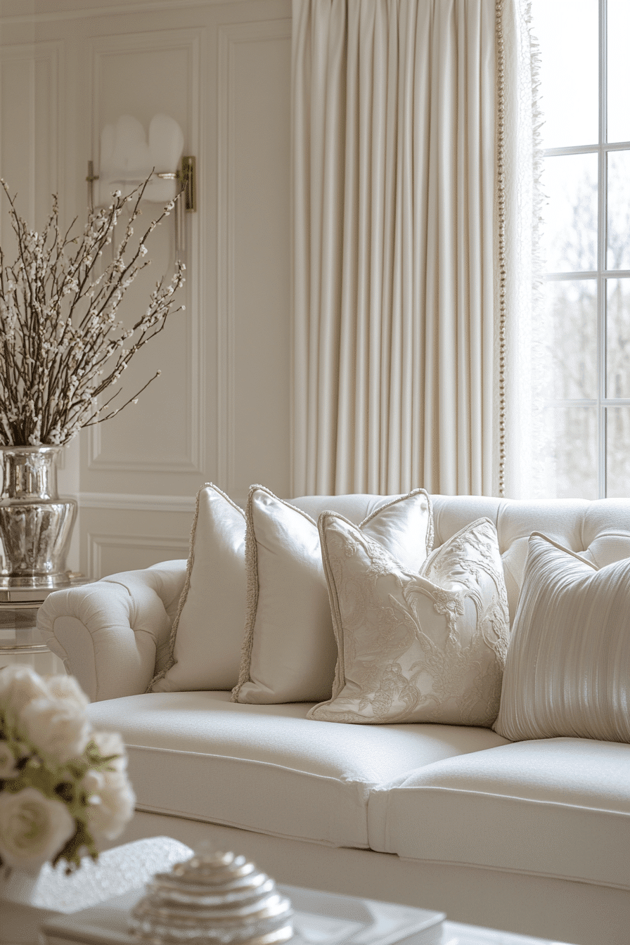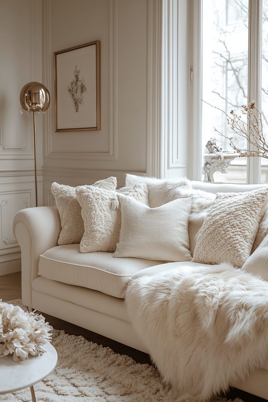 Soft ivory tones create a luxury living room design that feels peaceful and timeless. Neutral palettes bring cohesion and calmness to the space. Plush textiles add warmth and comfort. Metallic accents introduce subtle elegance. Natural light enhances the airy atmosphere. Create a serene living room retreat now.
