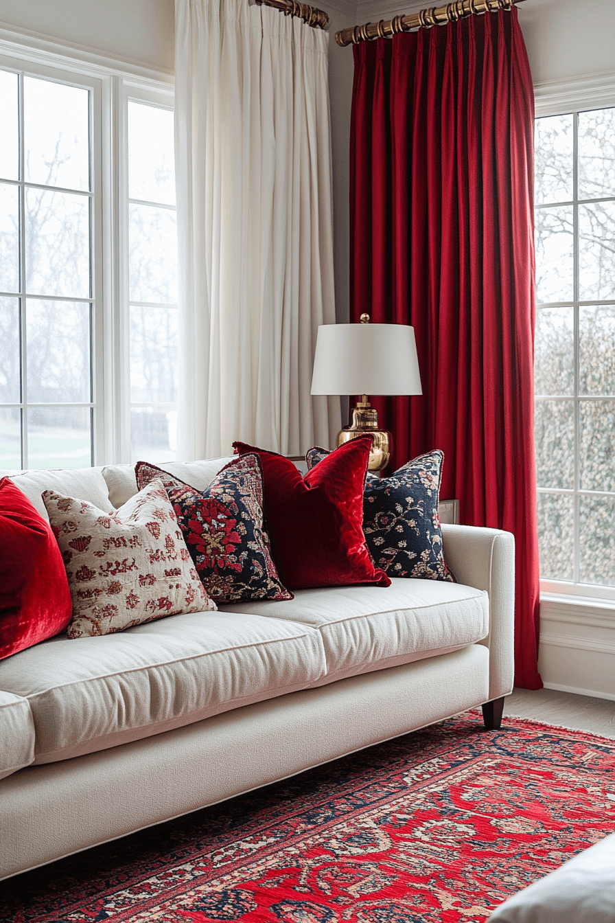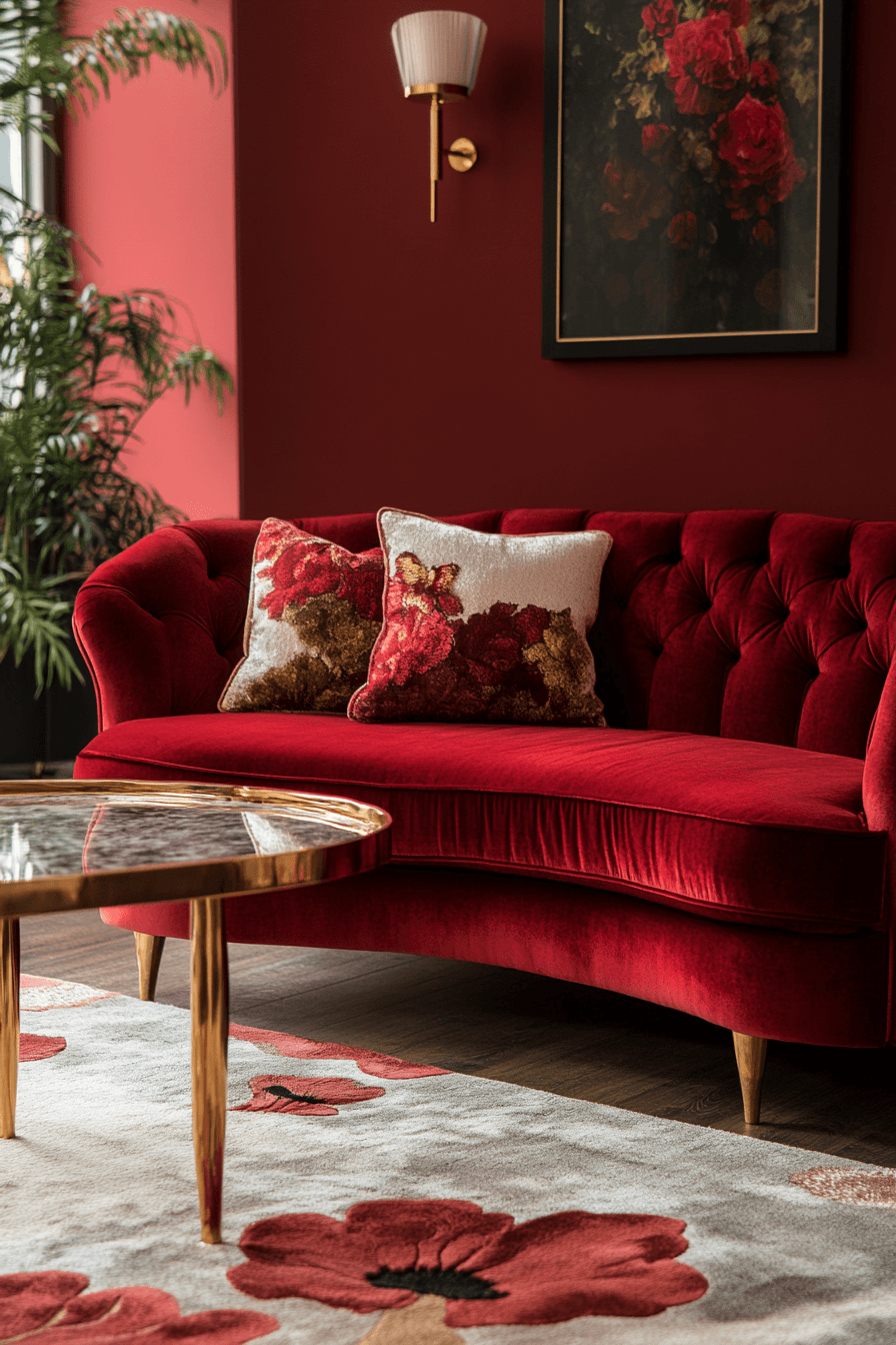 Rich ruby tones bring bold elegance into a luxury living room design filled with warmth and depth. Deep hues create a dramatic focal point. Neutral elements balance the intensity of the palette. Metallic accents enhance the richness of the color. Plush textiles add comfort and refinement. Design a living room that feels both bold and sophisticated now.