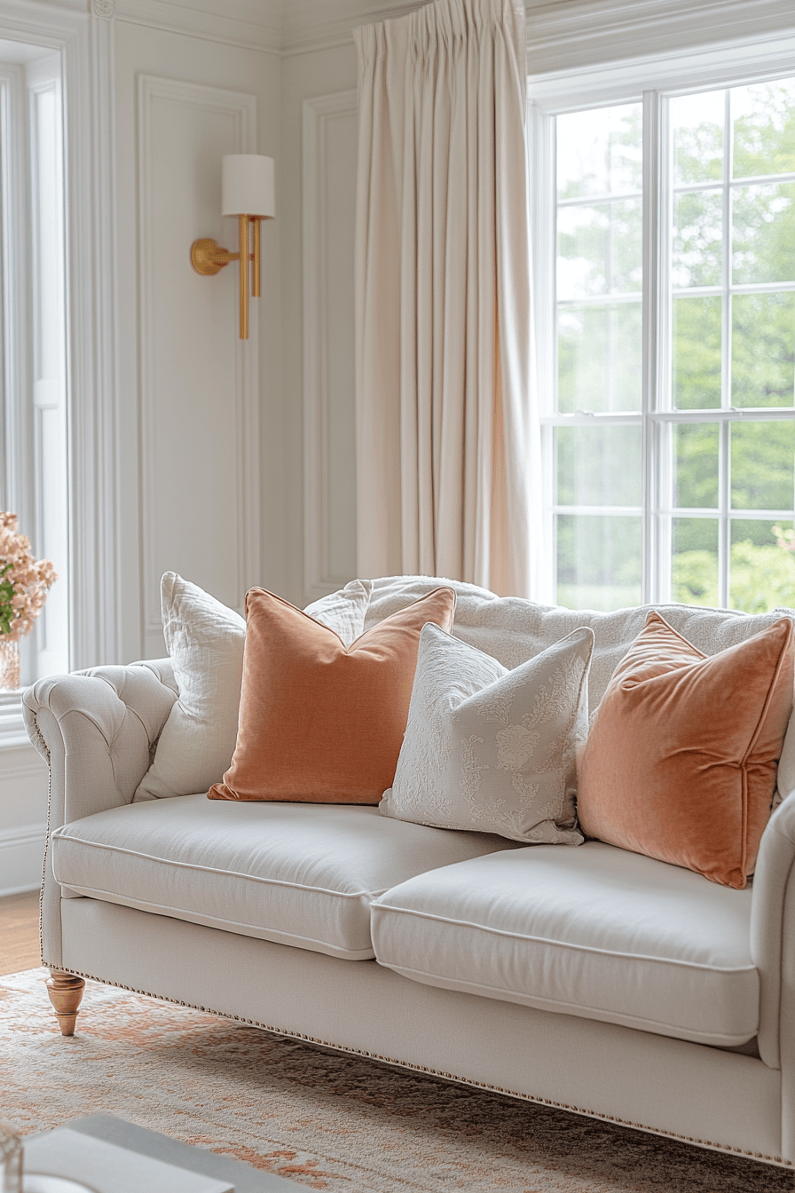 Coral tones introduce freshness and vibrancy into a luxury living room design that feels lively yet refined. Bright accents are balanced with neutral elements for harmony. Metallic details add warmth and polish. Plush fabrics enhance comfort while tying the palette together. Soft lighting ensures the colors remain inviting. Bring energy and charm into your living room today.
