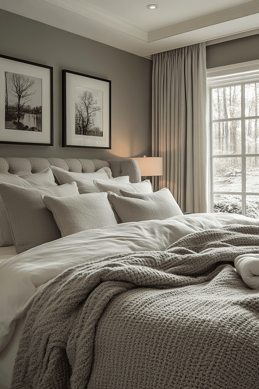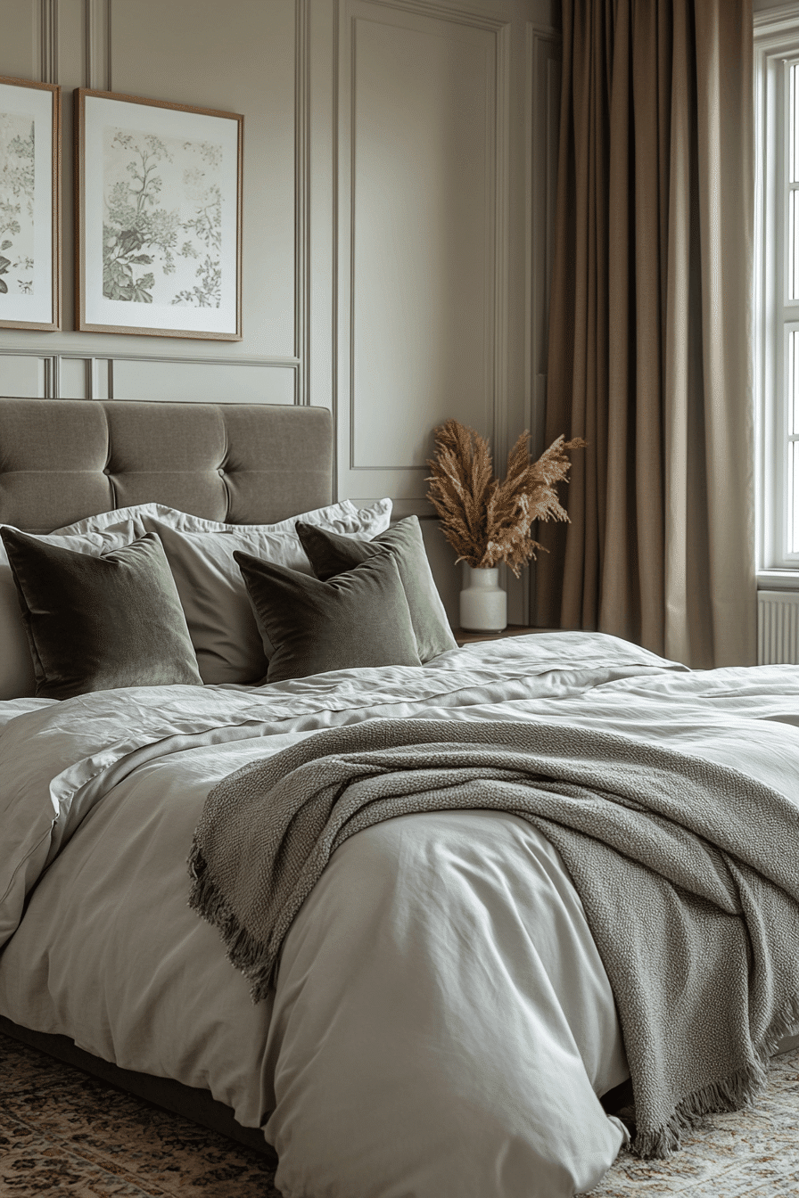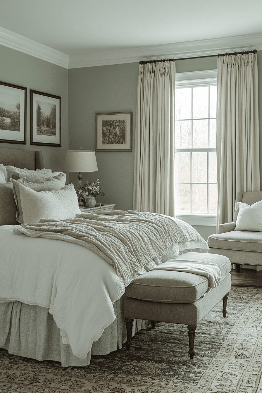Timeless style shines in master bedrooms ideas for couples who appreciate classic design. Soft greys and sage tones add a refined touch. Neutral decor keeps the room balanced and fresh. Elegant bedding enhances the sophisticated feel. Warm lighting completes the overall look. Discover timeless inspiration for your bedroom today.
