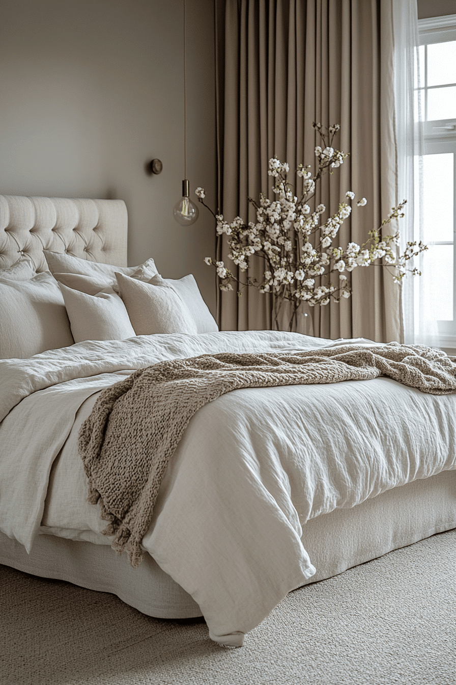 Soft textures and romantic tones define master bedrooms ideas for couples seeking a more intimate escape. Plush bedding invites relaxation while warm accents add a welcoming touch. Neutral hues blend seamlessly for a timeless and soothing look. Subtle lighting enhances the cozy atmosphere throughout the room. Carefully selected decor keeps everything elegant yet practical. Create your own romantic escape and feel the difference instantly.