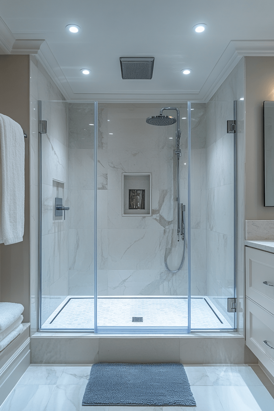 Frameless glass showers create a modern luxury bathroom that feels open, airy, and effortlessly elegant. Clean lines enhance the minimalist layout. Rainfall fixtures add a spa-like indulgence. Sleek tile patterns elevate the overall design. Soft lighting enhances clarity and depth. Click to discover elegant shower concepts for modern luxury bathroom spaces.