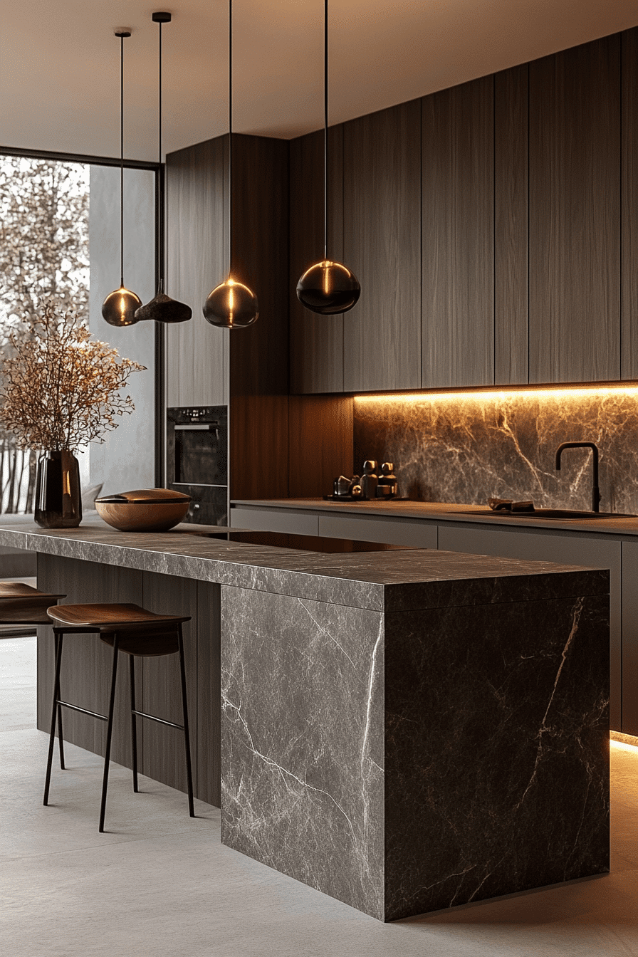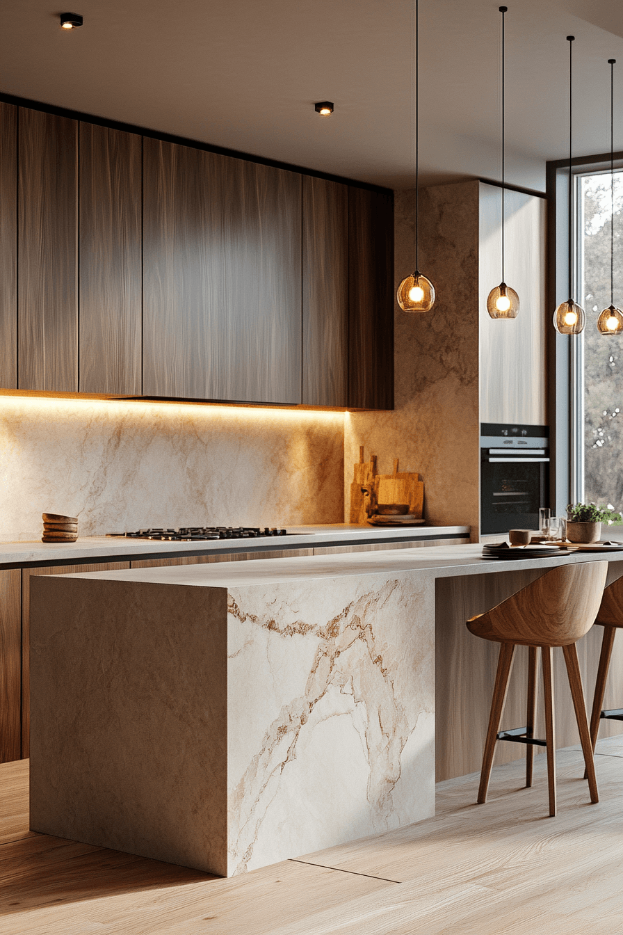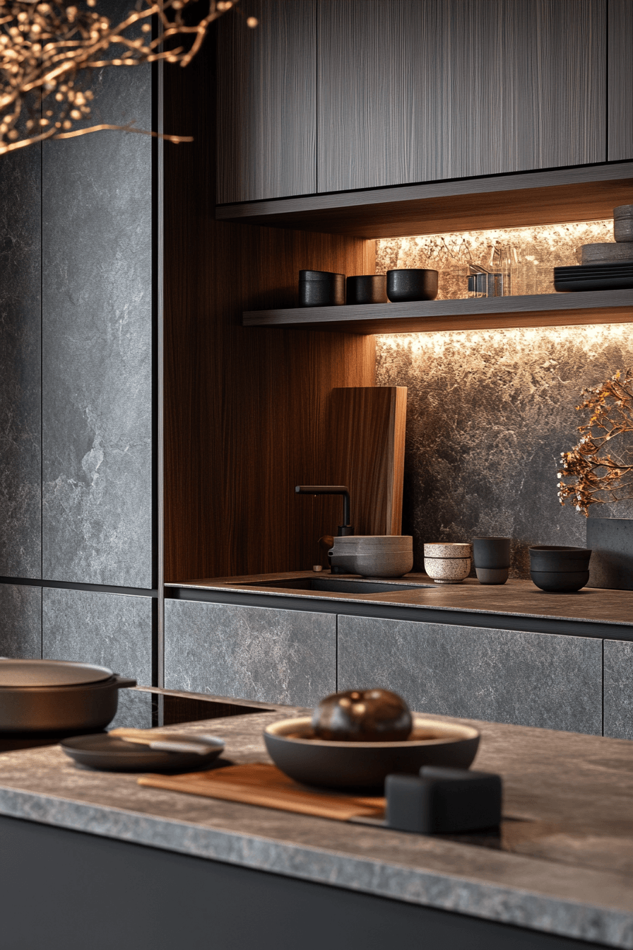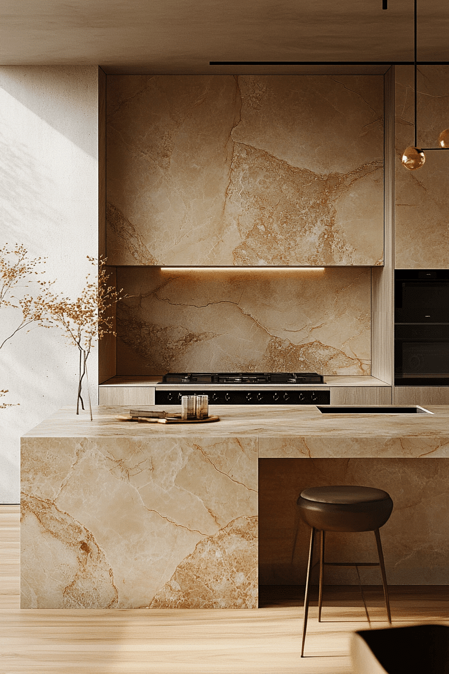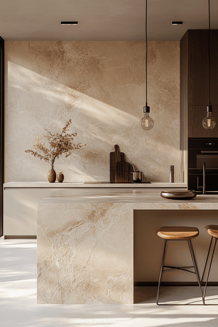 Smooth stone surfaces elevate a modern minimalist kitchen by combining durability with refined aesthetics that highlight clean lines and natural textures without overwhelming the design. Quartz or granite counters enhance sophistication. Subtle textures add depth. The design remains timeless. The space feels polished and durable. Explore how stone surfaces enhance kitchens.