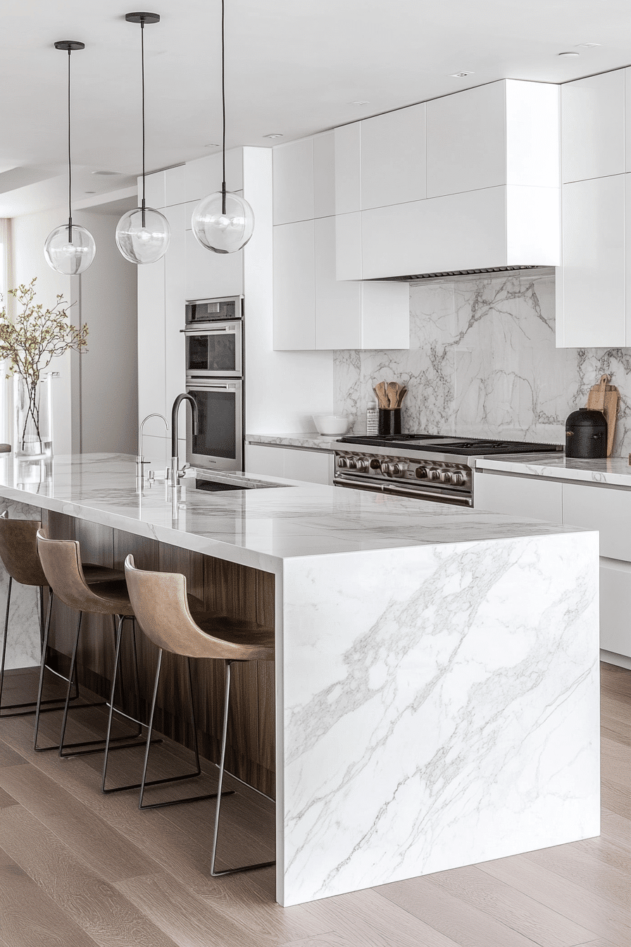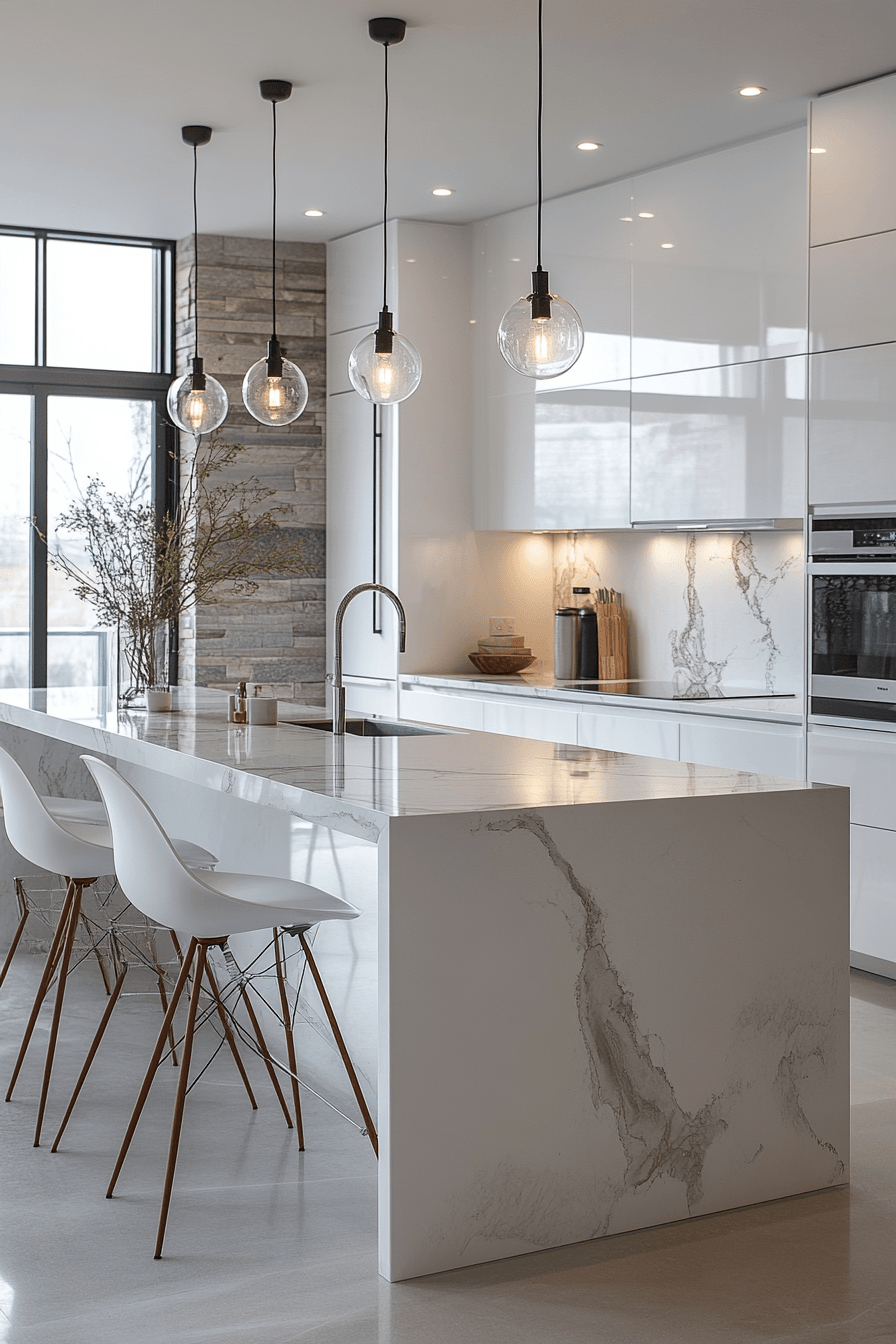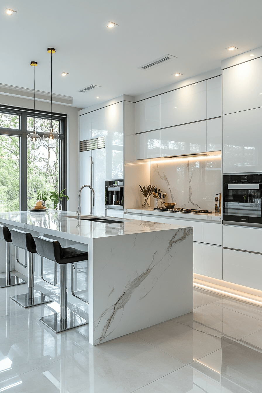 Bright white surfaces define a modern minimalist kitchen by enhancing light and creating a fresh, expansive feel that works beautifully in both small and large spaces. Glossy cabinetry reflects light while streamlined hardware keeps the aesthetic clean and uncluttered. Subtle contrast from wood or metal accents adds depth without disrupting the simplicity. Clean countertops emphasize both function and form. The design remains timeless and adaptable. Discover how white minimalism brings clarity and openness into your kitchen.
