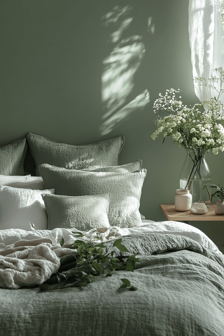 29. Dreamy Sage Grey Bedroom