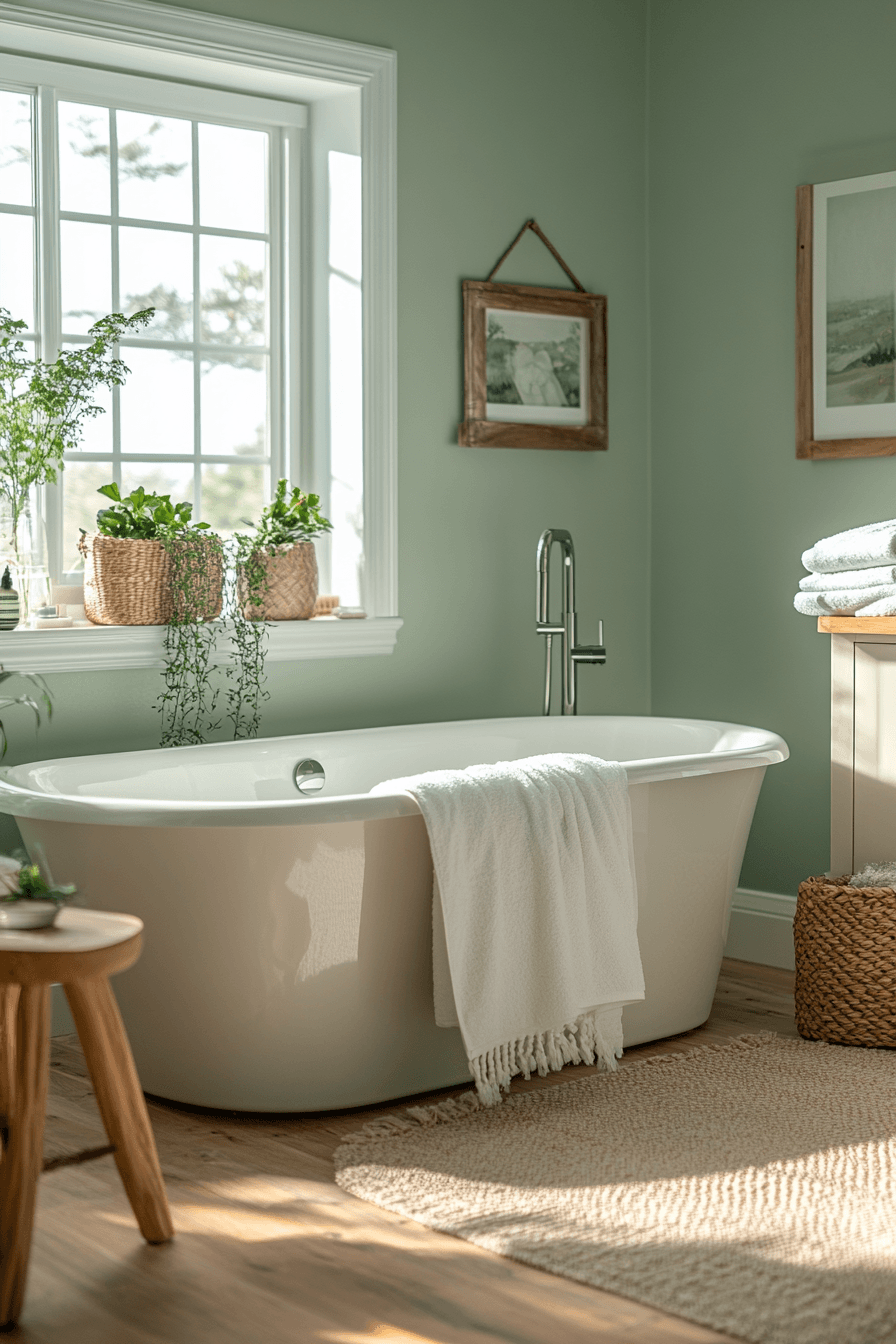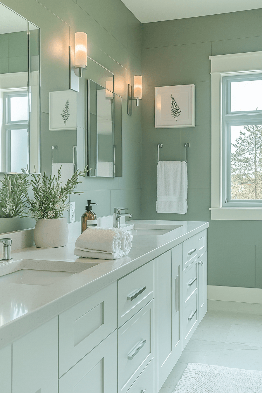 Fresh tones bring life to a sage green bathroom that feels bright and rejuvenating. Gentle green shades visually expand the room. Neutral accents maintain balance in the design. Modern fixtures highlight the refreshing palette. The bathroom feels uplifting and clean. Explore more fresh sage bathroom inspiration.