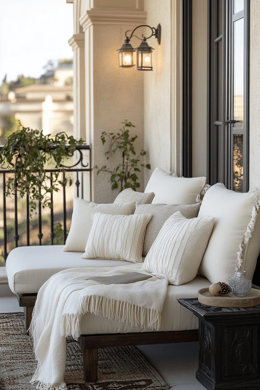 Textiles add depth and comfort to small balcony design while keeping the space inviting. Cushions and throws create warmth without clutter. Neutral colors maintain balance. Simple forms keep the layout clean. The result feels cozy yet modern. Enhance your space with textile-focused small balcony design ideas now.