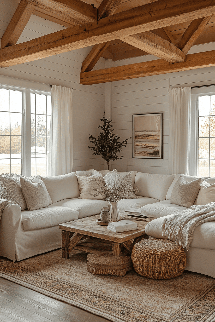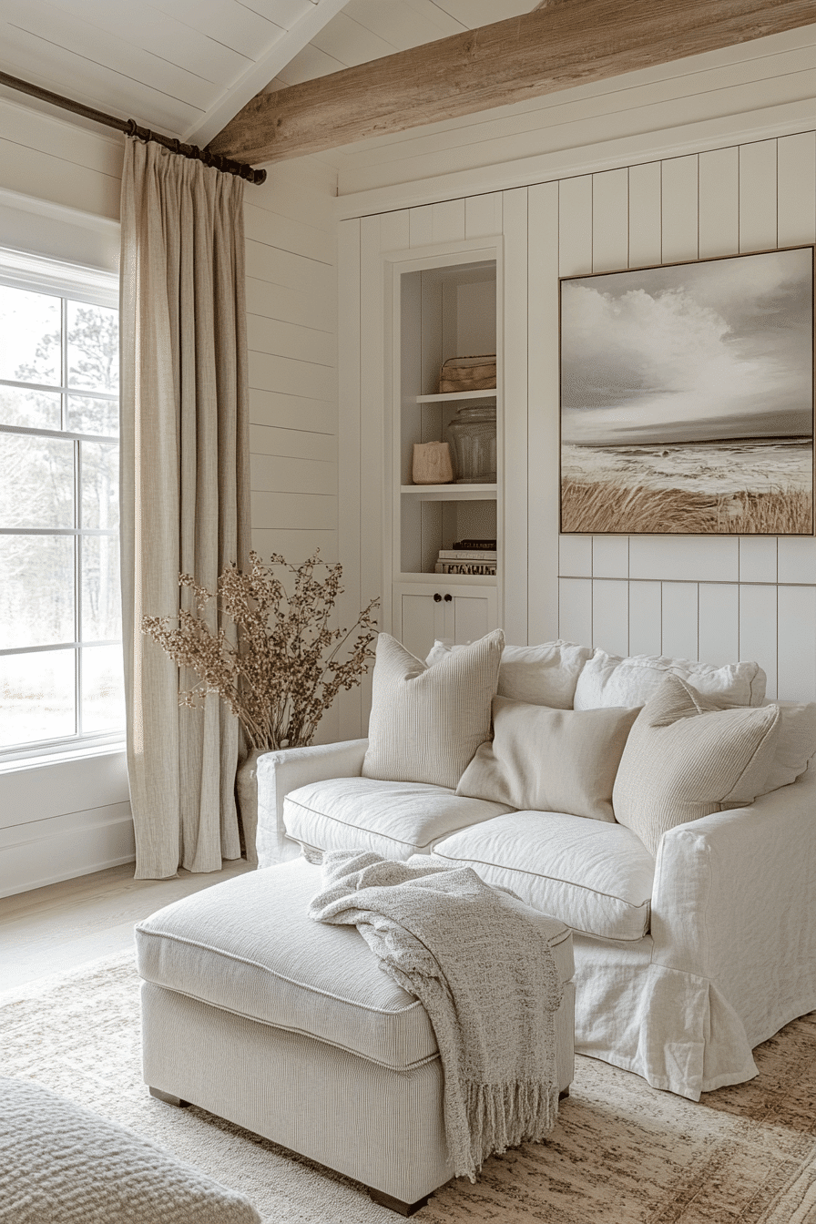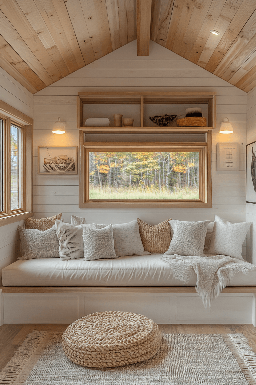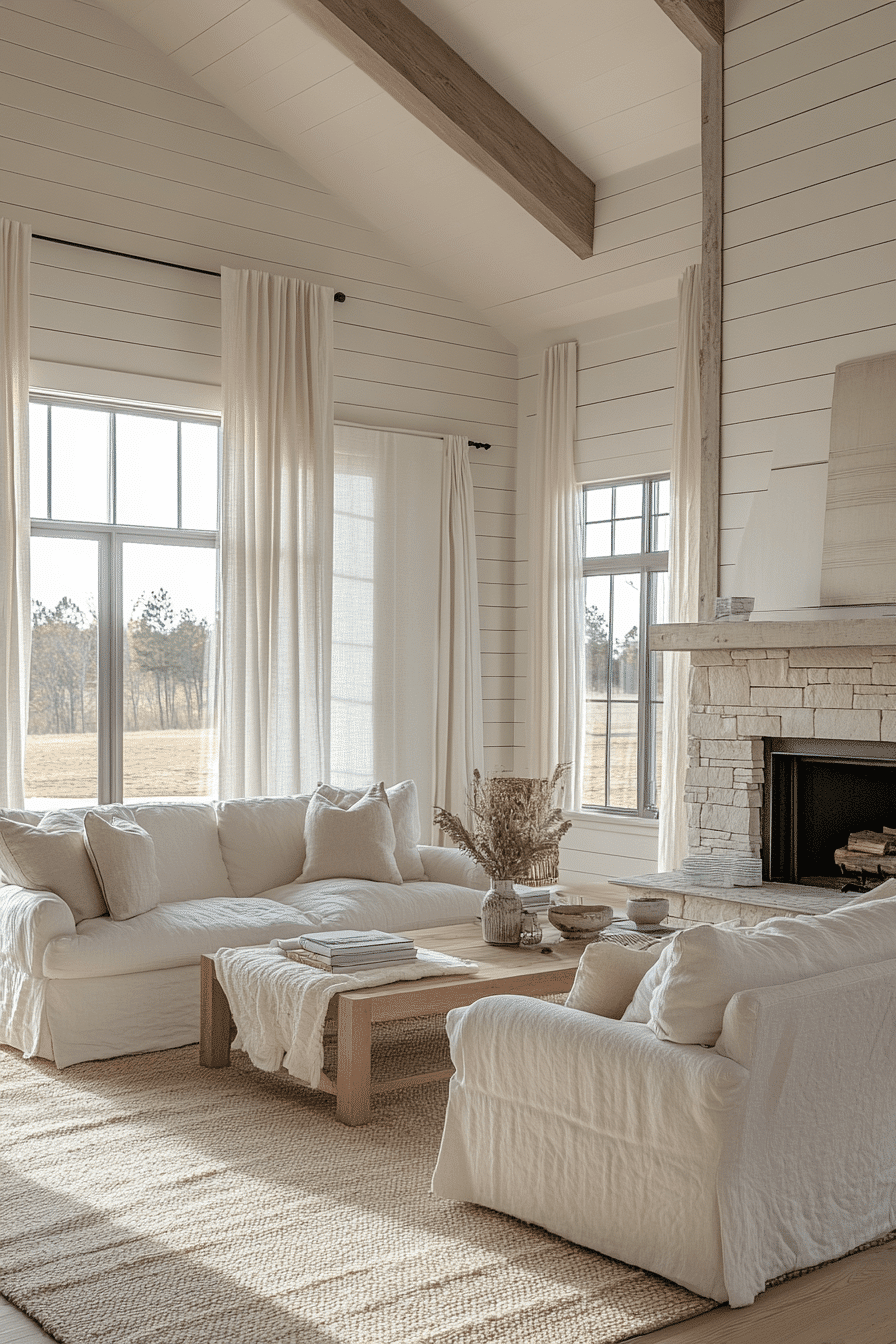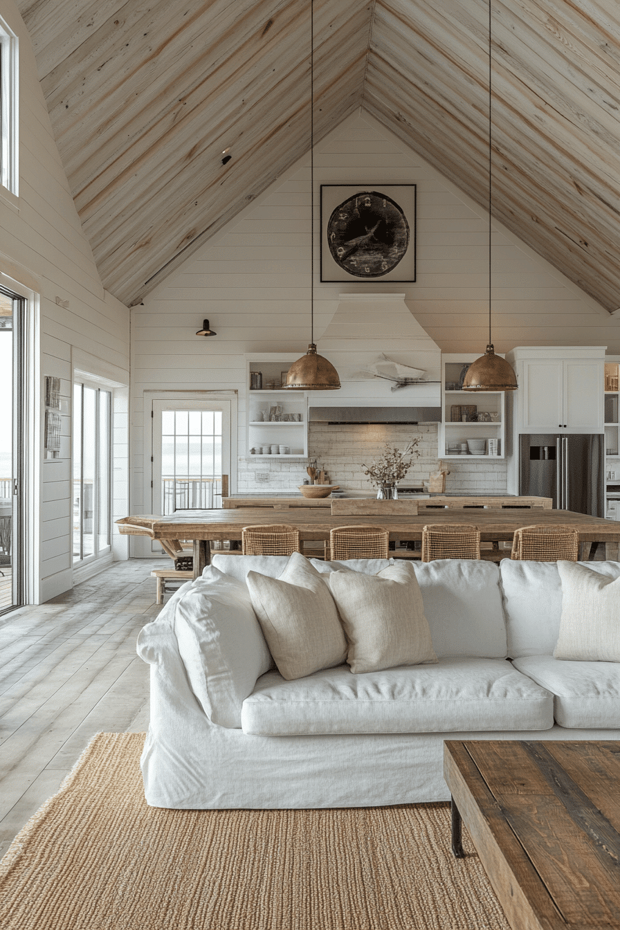 Layered neutrals create depth and softness while maintaining an airy and cohesive look. These small barndominium ideas combine whites, creams, and taupes through textures and finishes. Subtle variation prevents flatness. The design feels warm and balanced. Every detail contributes to comfort. Explore more layered small barndominium ideas for a rich, soft aesthetic.