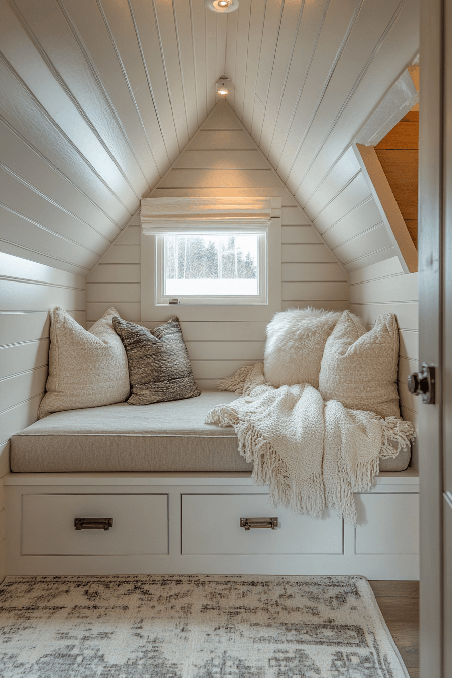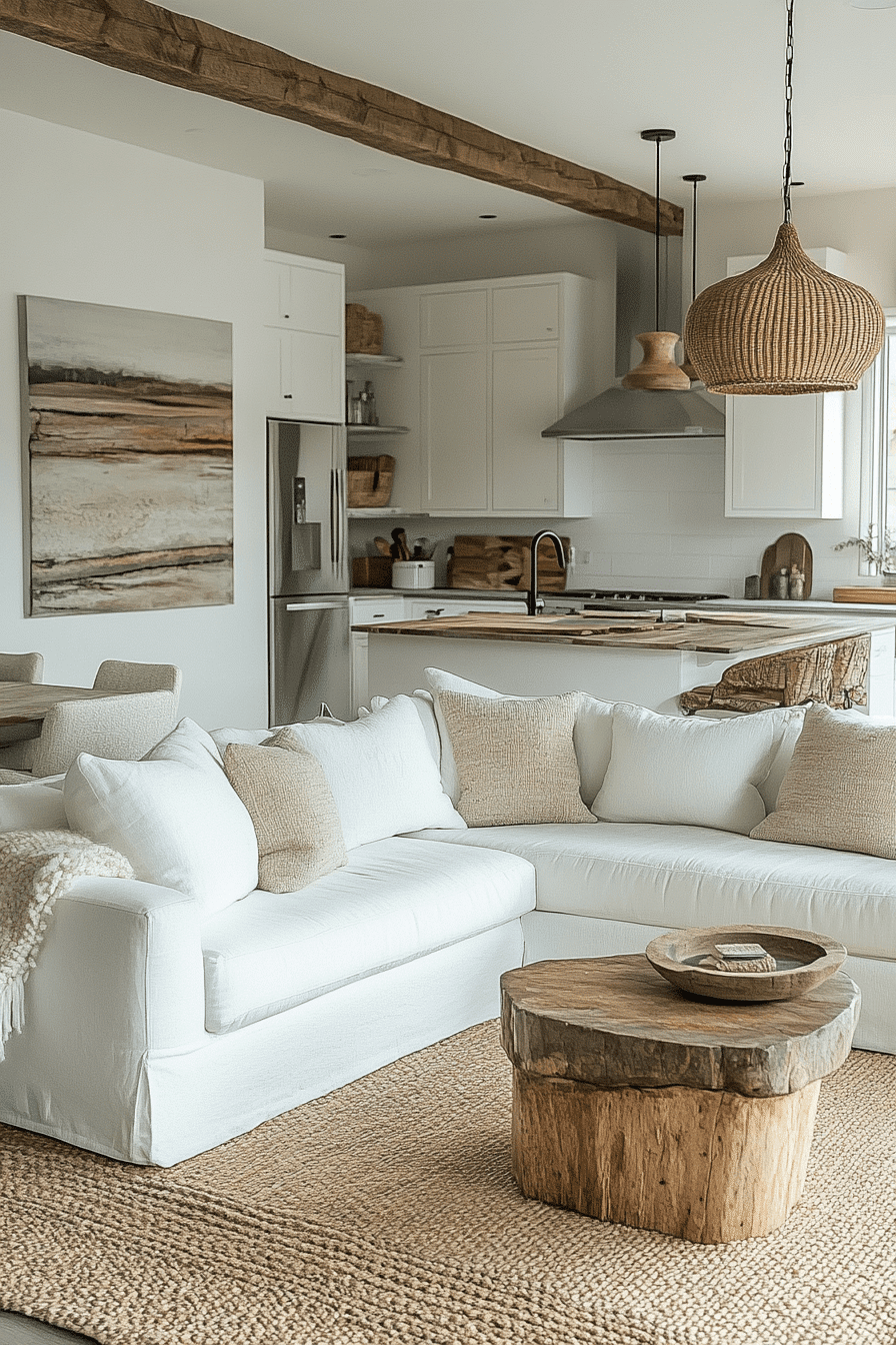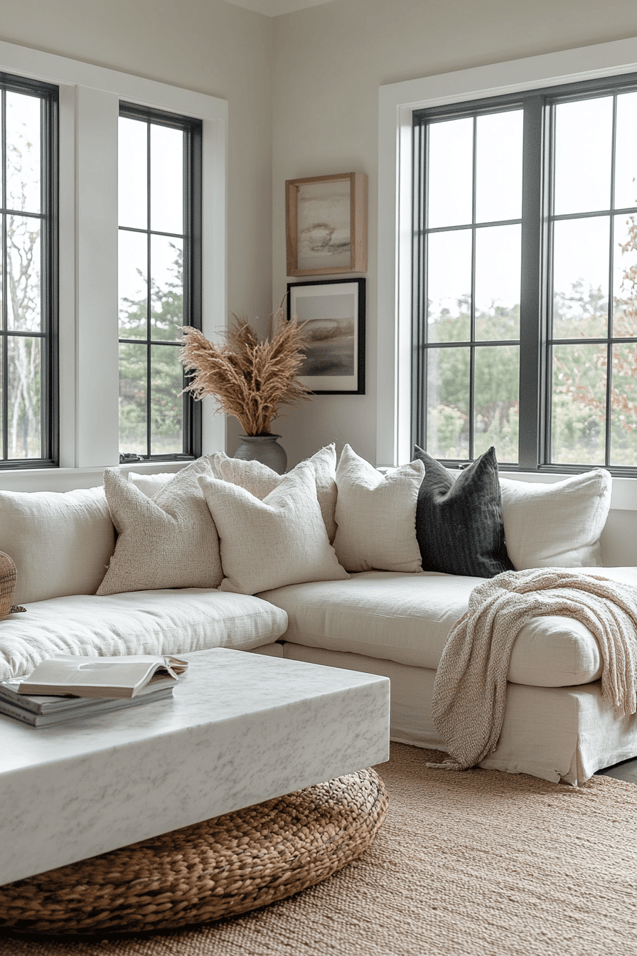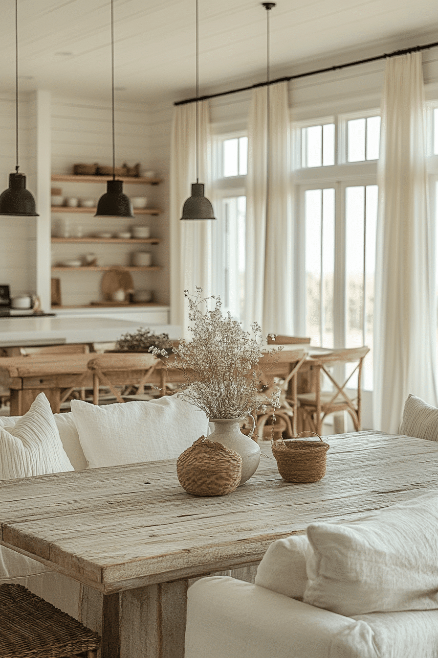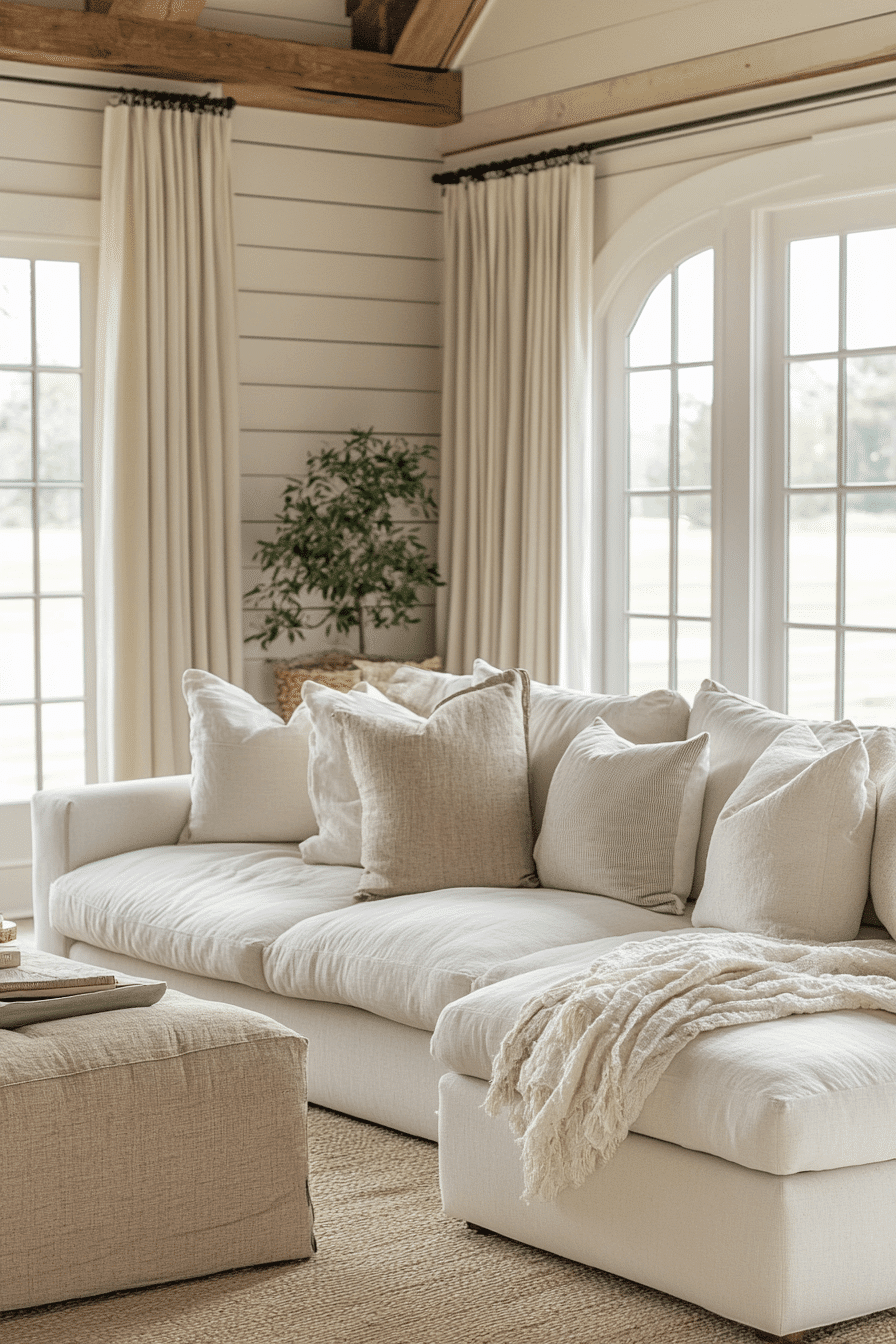 Layered neutrals create depth and softness while maintaining an airy and cohesive look. These small barndominium ideas combine whites, creams, and taupes through textures and finishes. Subtle variation prevents flatness. The design feels warm and balanced. Every detail contributes to comfort. Explore more layered small barndominium ideas for a rich, soft aesthetic.