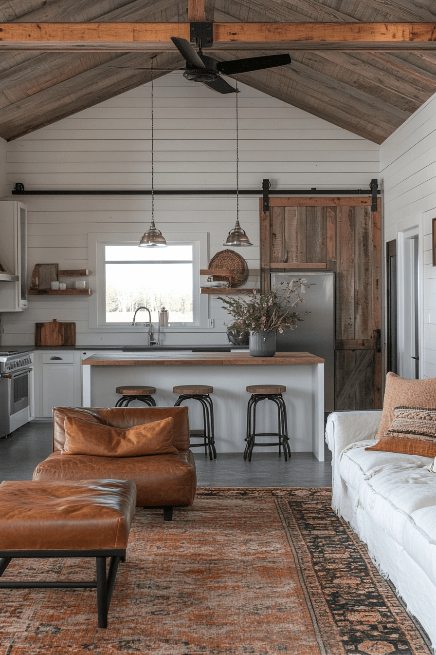 Balanced layouts and natural light create a space that feels both functional and beautiful. These small barndominium ideas use open floor plans and thoughtful furniture placement. Light flows freely throughout. The design feels intuitive and inviting. Every element enhances flow. Explore more light-balanced small barndominium ideas for a cohesive design.