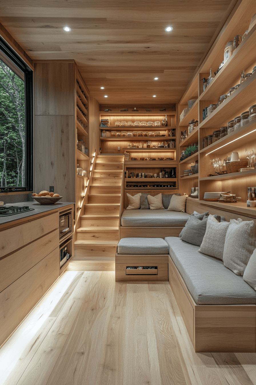 Hidden storage solutions keep the space clean and minimal while maximizing functionality. These small barndominium ideas integrate storage seamlessly into cabinetry and walls. The design feels uncluttered yet practical. Every feature serves a purpose. The space remains sleek and efficient. Discover more hidden storage small barndominium ideas for a streamlined look.