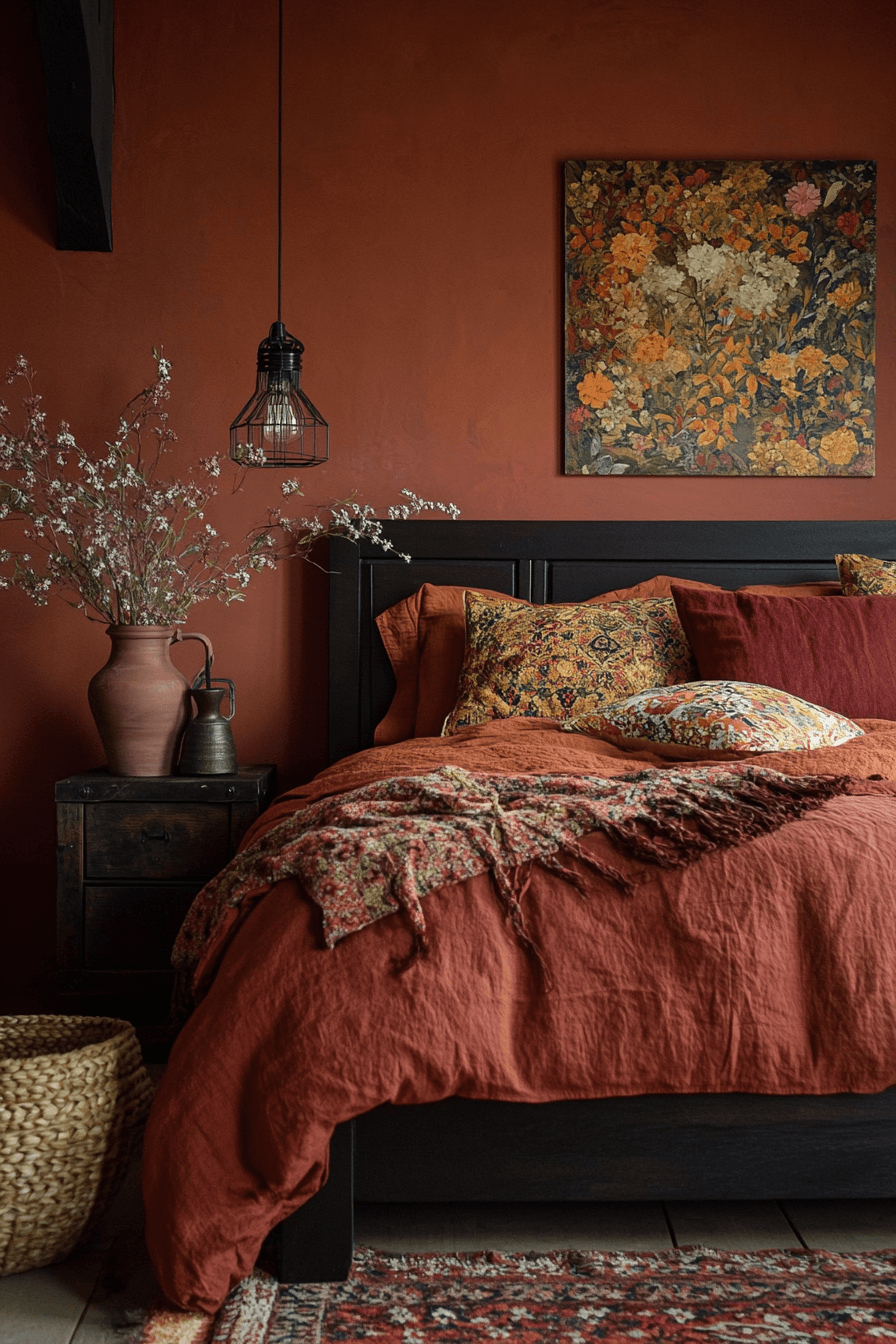 Whether you’re drawn to the boldness of rust-colored textiles or the subtlety of clay-toned walls, terracotta offers a versatile foundation for bohemian expression. Paired with natural materials, plants, and handcrafted details, it creates bedrooms that nurture and inspire.