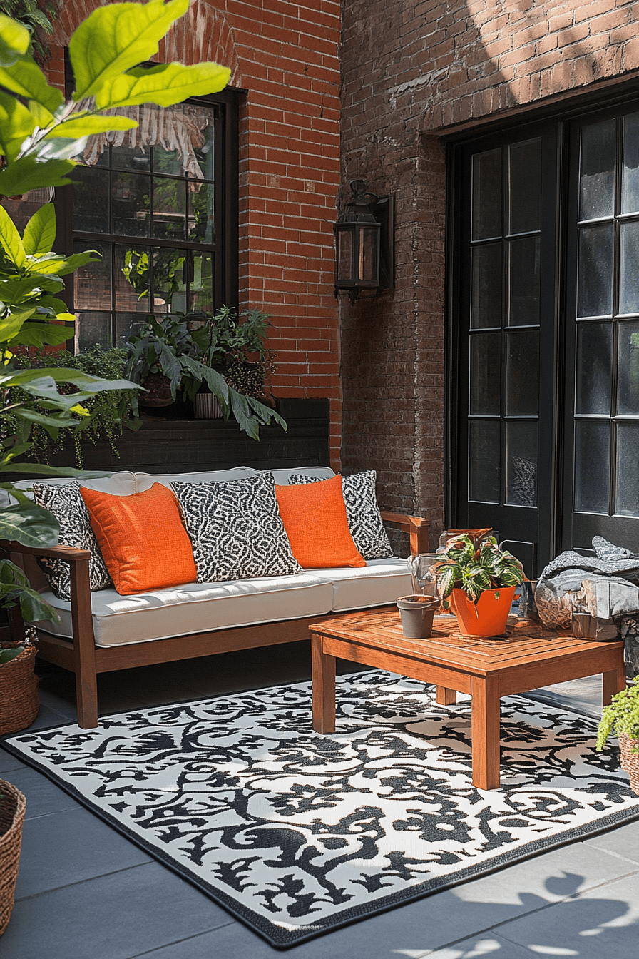 Bold accents bring personality into these tiny patio ideas without overwhelming the space. Statement décor pieces like patterned cushions or standout lighting add character. Neutral backgrounds keep the look balanced. Clean-lined furniture ensures a polished finish. The design feels vibrant yet cohesive. Discover more tiny patio ideas with bold touches.