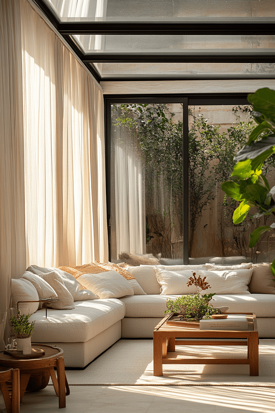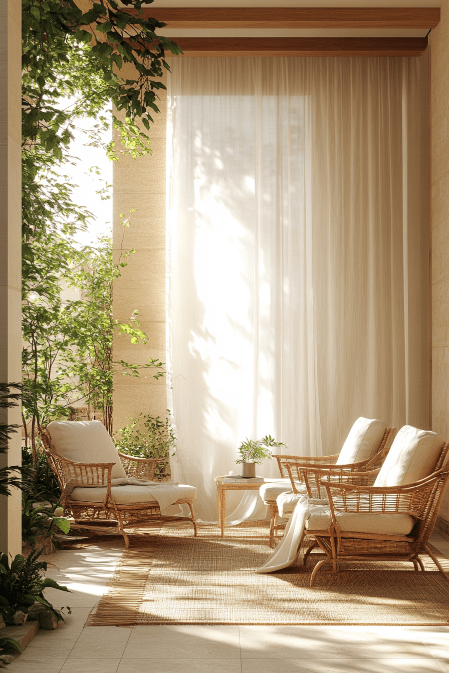 Airy design principles shape these tiny patio ideas, making small spaces feel larger and more open. Minimal furniture and pale tones enhance the sense of space. Sheer elements add privacy while maintaining lightness. Subtle textures create depth without heaviness. The patio feels fresh and calm. Explore more tiny patio ideas that embrace openness.