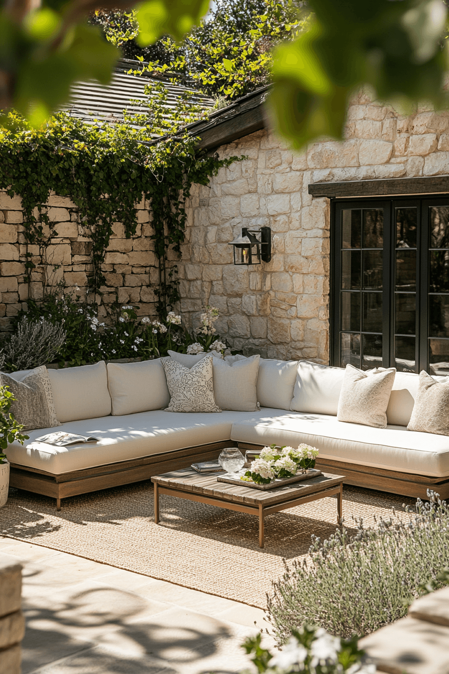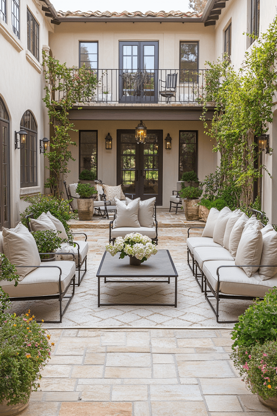 Flexible seating defines these tiny patio ideas, allowing small spaces to adapt easily. Stackable or modular furniture offers versatility for different occasions. Neutral upholstery keeps the space feeling light and fresh. Soft textiles enhance comfort while maintaining style. The layout remains functional and inviting. Discover more tiny patio ideas with smart seating solutions.