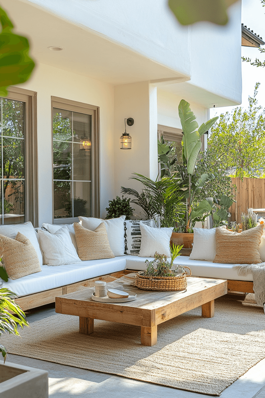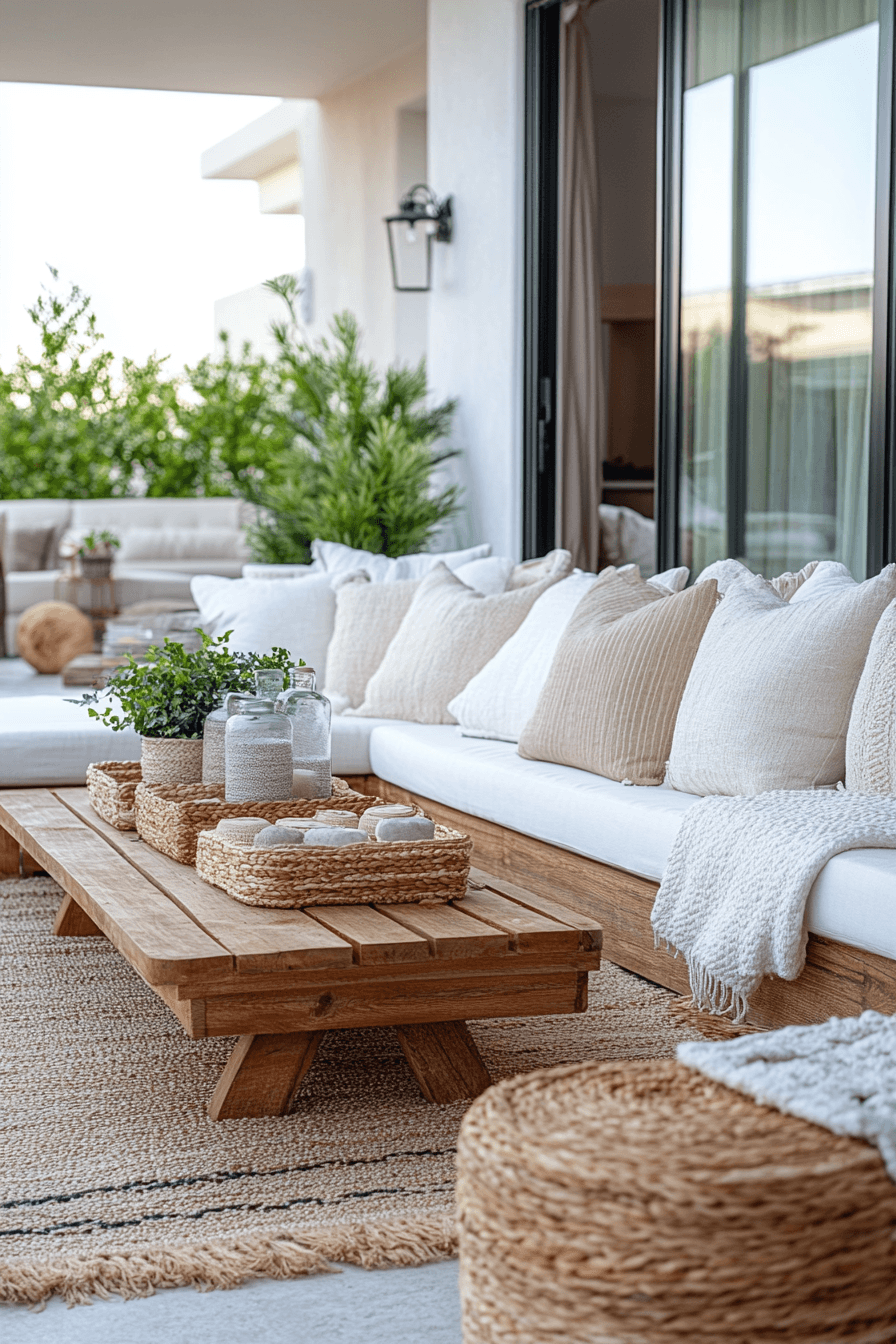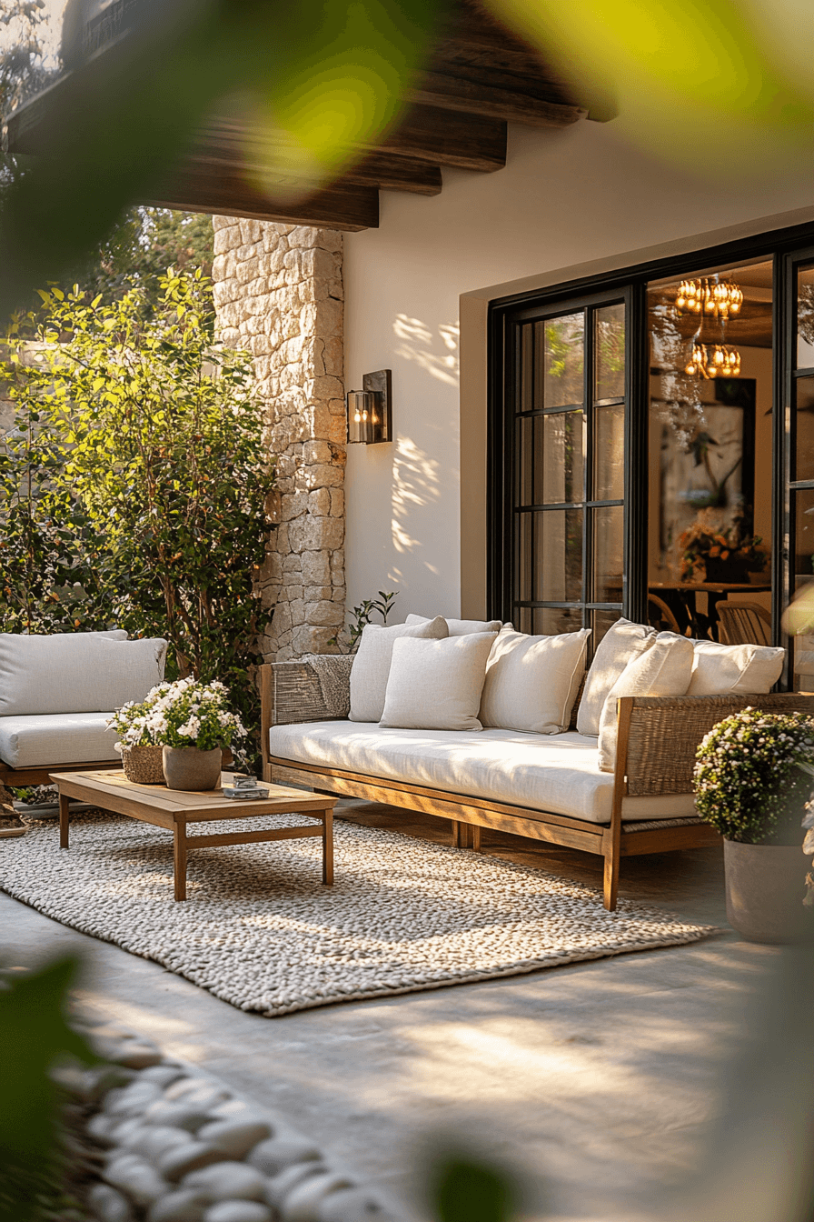 Neutral styling anchors these tiny patio ideas with a calm and modern aesthetic. Soft tones create a harmonious foundation. Natural textures add subtle depth. Layered textiles enhance comfort. The patio feels inviting and balanced. Explore more tiny patio ideas with neutral design.