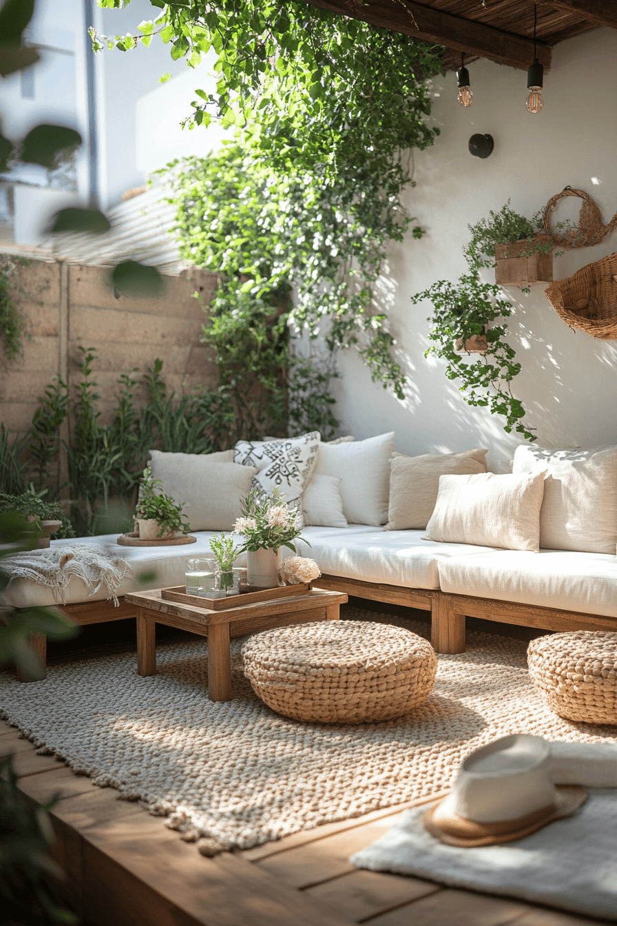 Smart solutions take center stage in these tiny patio ideas designed for maximum functionality. Foldable furniture and multi-use pieces make the most of limited space. Built-in seating provides comfort without taking up extra room. Neutral tones keep the layout open and cohesive. Textured accents add warmth and charm. Discover more tiny patio ideas that blend style and practicality.