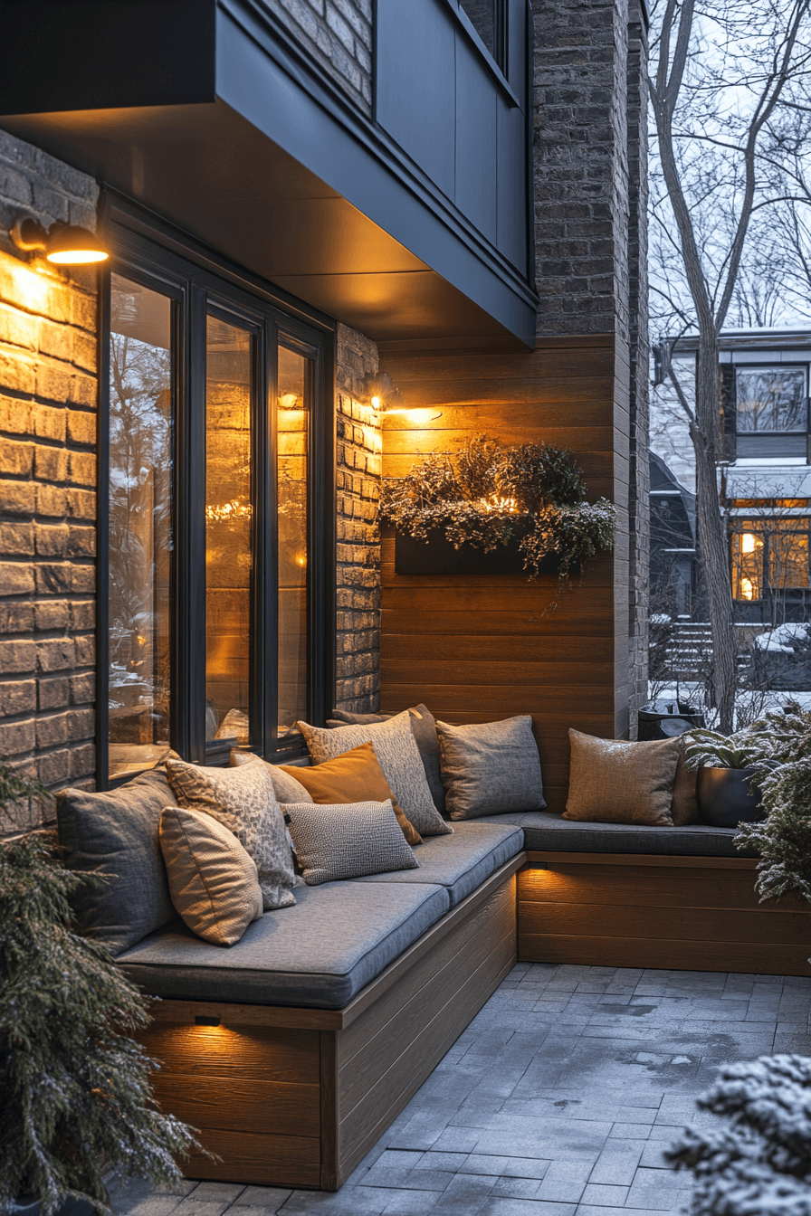 A modern edge brings energy to these tiny patio ideas with bold lighting and sleek finishes. Monochrome palettes create contrast and interest. Compact layouts highlight clean lines. Neutral backdrops maintain cohesion. The patio feels dynamic yet refined. Discover more tiny patio ideas with modern flair.