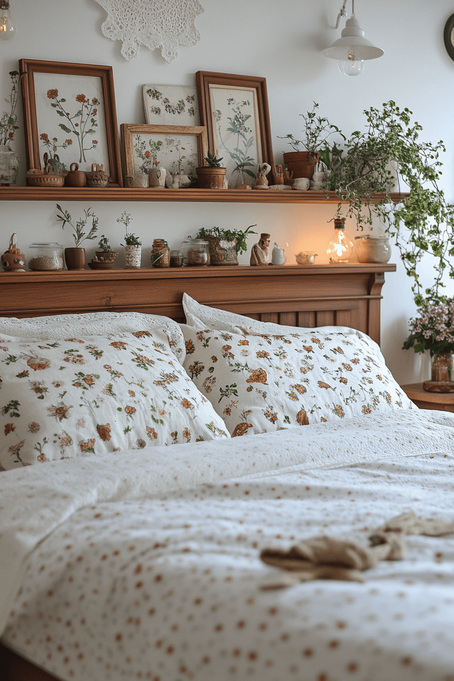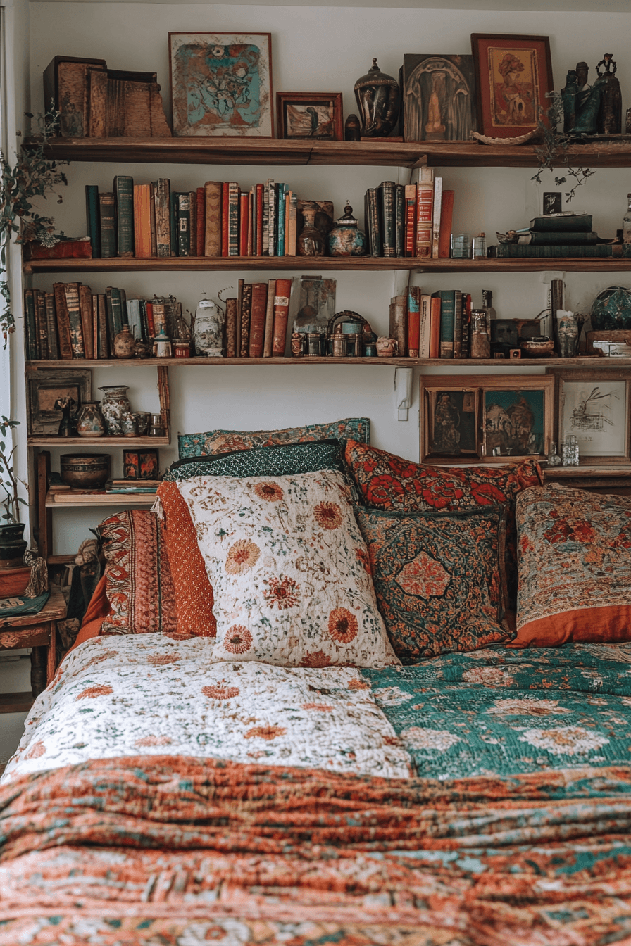 Personal collections can define vintage boho bedroom ideas filled with meaningful decor. Thrifted objects, antique frames, and handmade textiles tell a story. Open shelves display cherished pieces beautifully. Layered patterns and colors create personality. The room feels creative and unique. See vintage boho bedroom ideas that celebrate eclectic keepsakes.