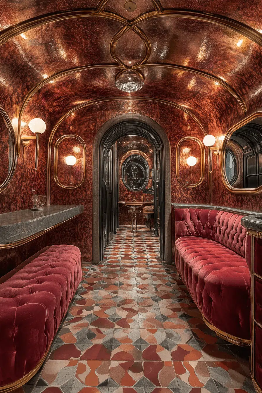 Dance into a flapper fling dressing spot, where vintage dressing rooms sparkle with 1920s zest and deco flair. Vibrant patterns and sleek vibes bring the party home, all affordably. It’s a spirited spot to strut your stuff.