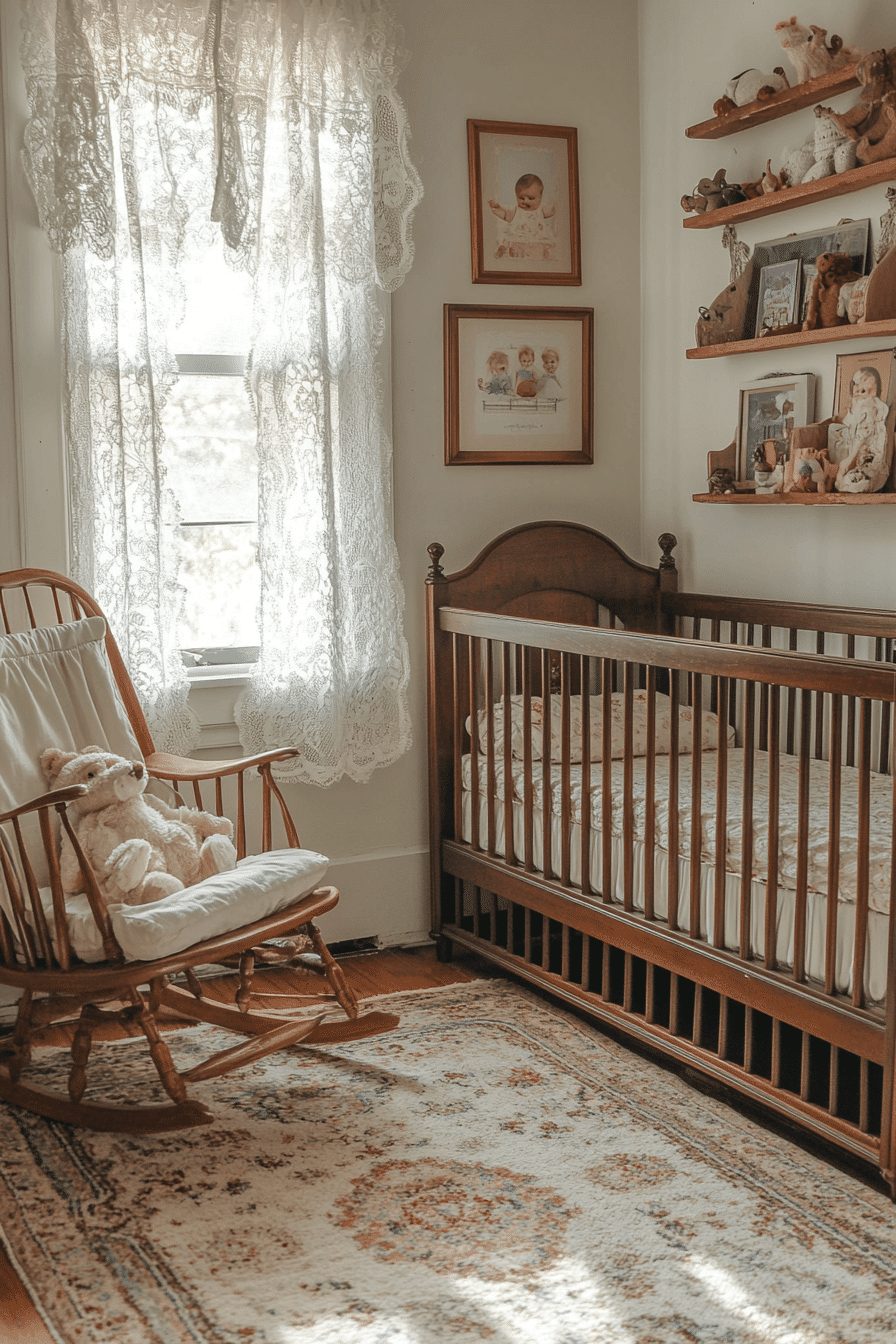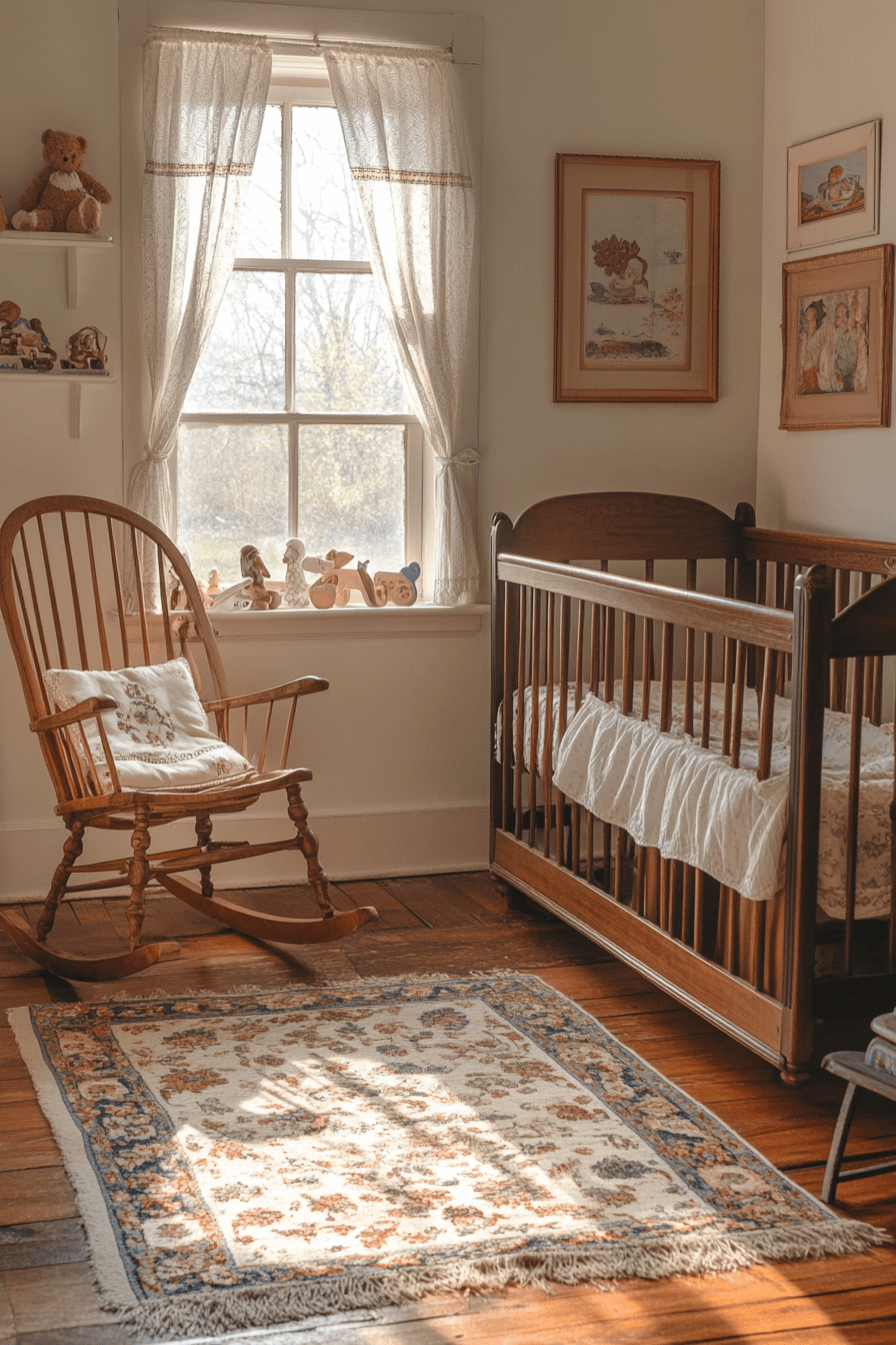 Family heirlooms create a meaningful and personal environment filled with warmth and history. This vintage kids room incorporates antique cribs, rocking chairs, and wooden dressers. Soft neutrals pair beautifully with lace accents. The décor tells a story across generations. The space feels comforting and unique. Explore more heirloom-inspired vintage kids room ideas for sentimental charm.
